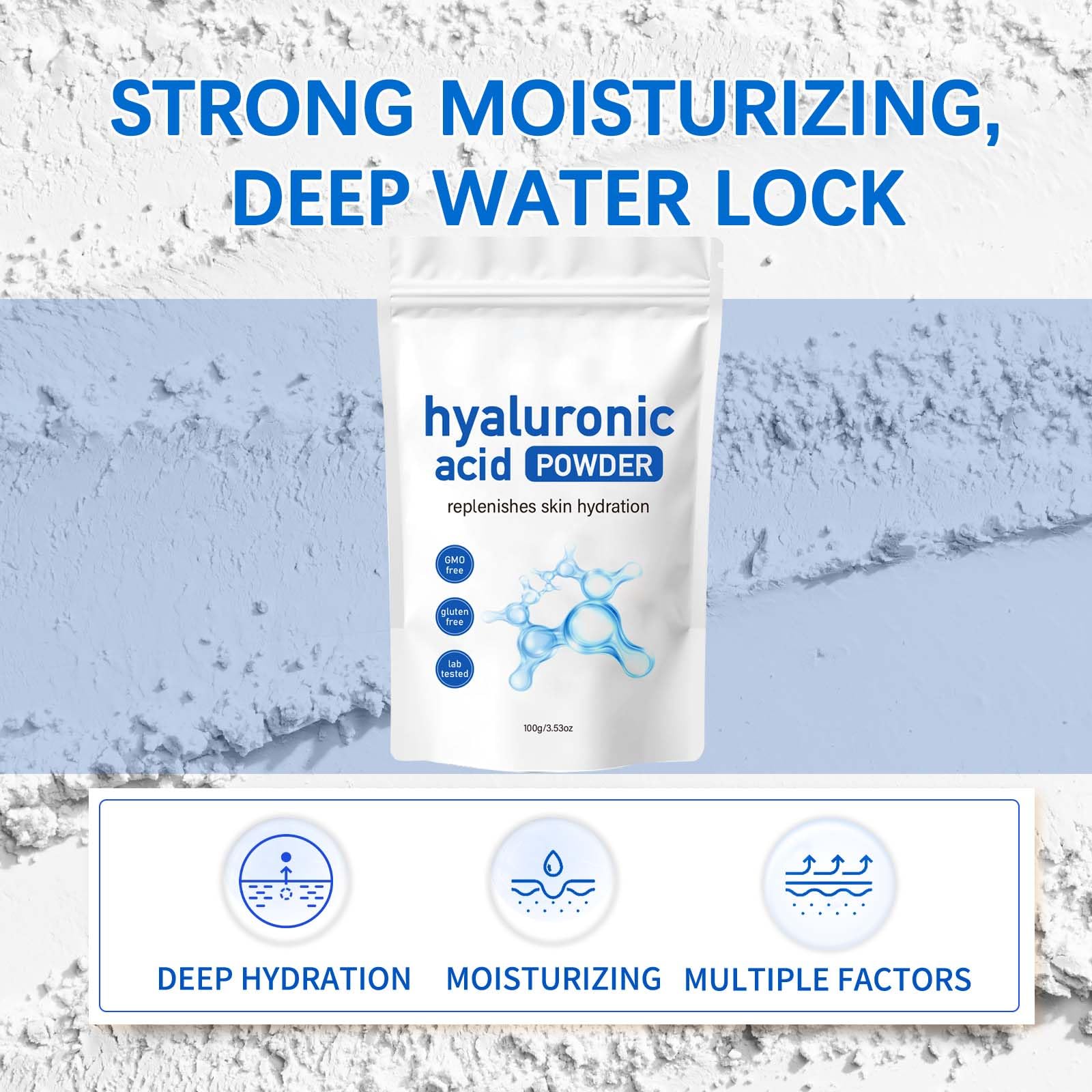 100g Hyaluron Powder, Hyaluronic Acid Powder Low Molecular, Pure & Vegan Hyaluronic Acid Powder, Cream Gel Serum Filler Face Low Molecular Hyaluronic Acid External Effect