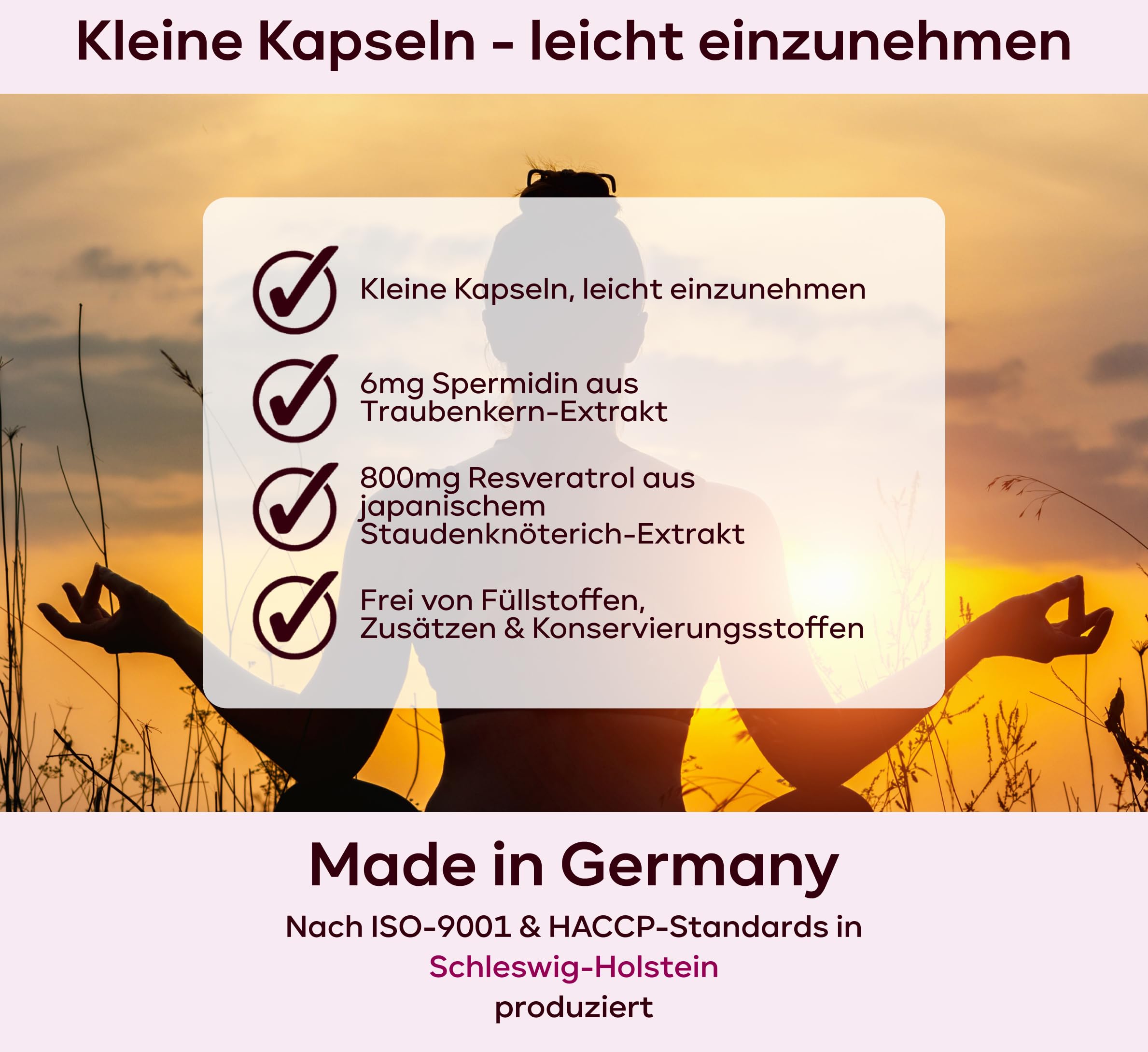 120 Spermidine Capsules High Dose - Spermidine 6mg & 800mg Trans Resveratrol High Dose - Unique Combination - 2 Month Supply