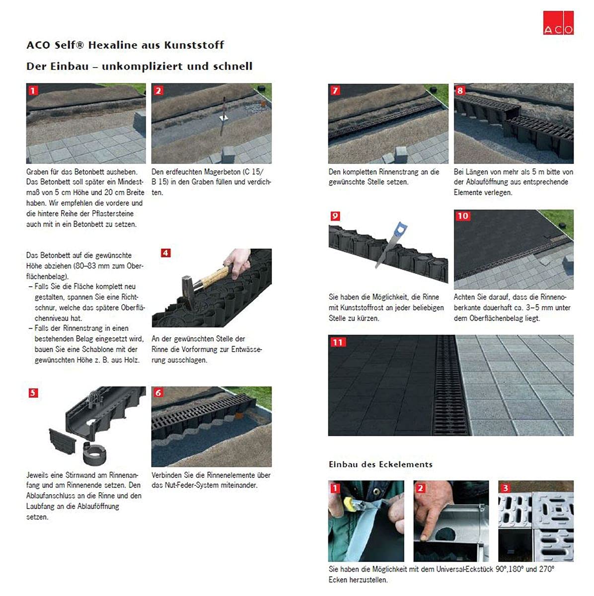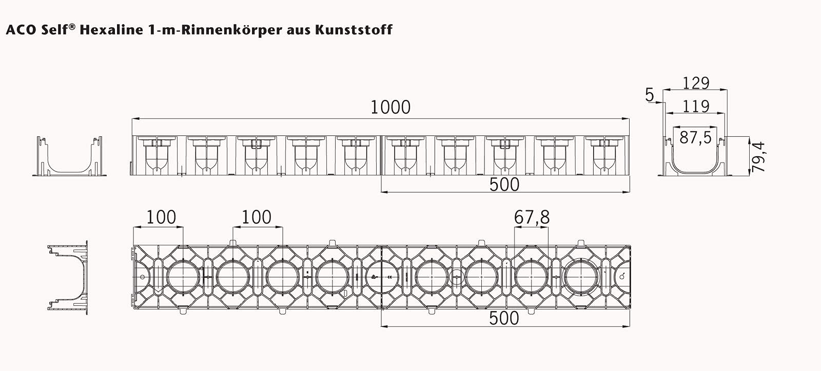 - Scope of delivery: 1 pc. ACO Hexaline 2.0 drainage channel including Microgrip slotted grating
