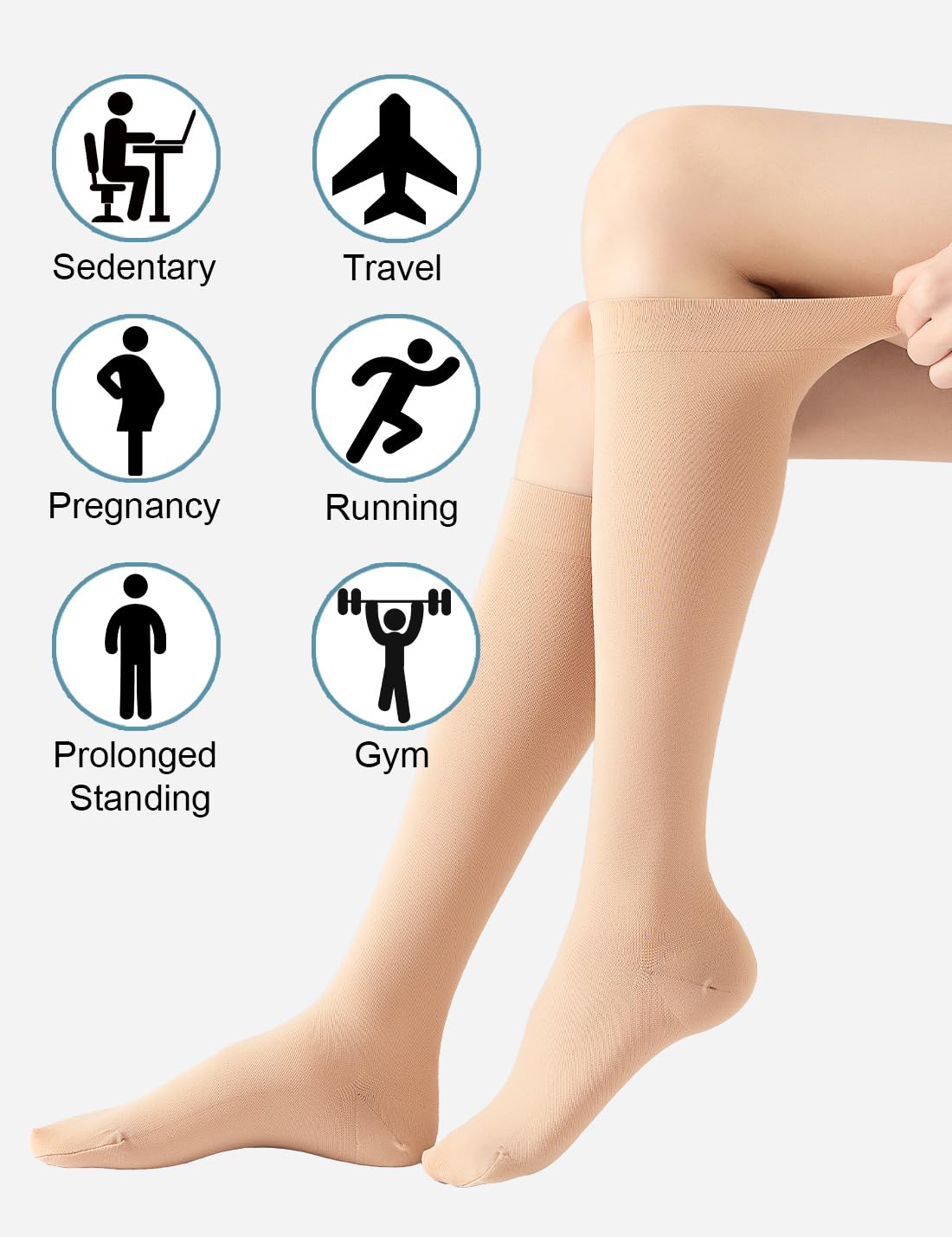 2 Pairs of Medical Compression Stockings for Women & Men 20-30 mmHg, Class 2, Closed Toe Graduated Support Stockings for Varicose Veins, Edema, and Flight (2x Beige, L)