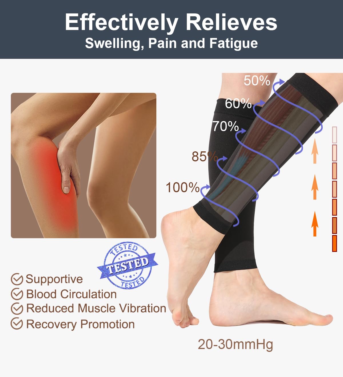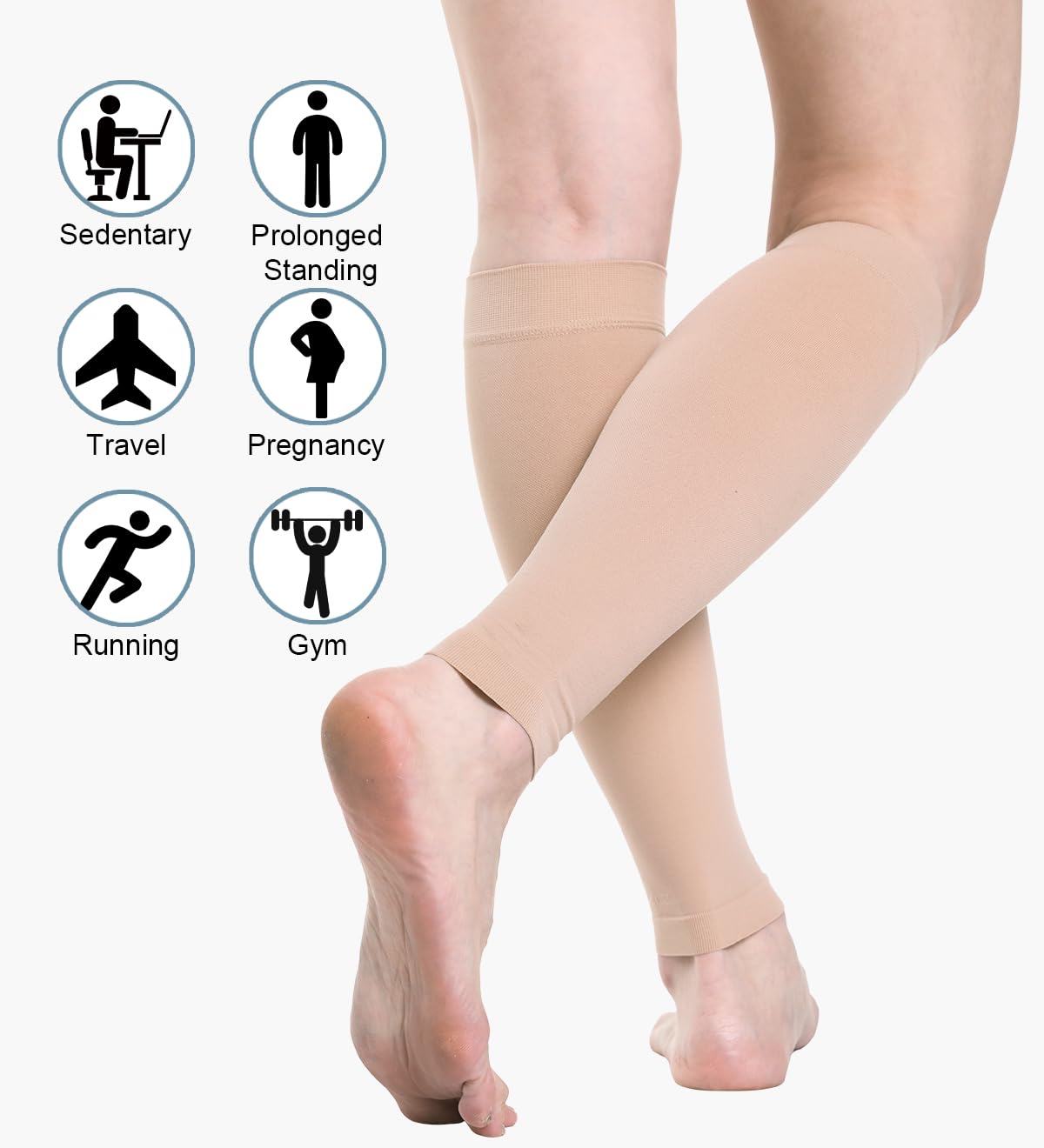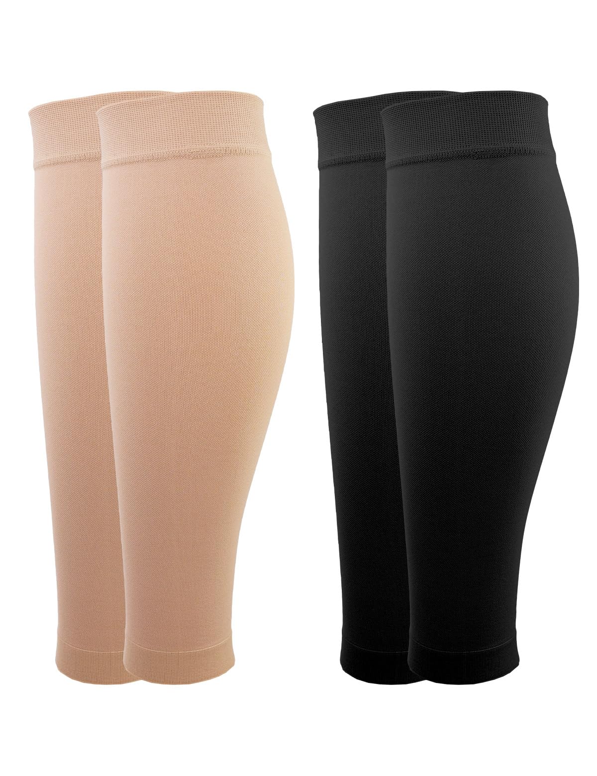 2 Pairs of Calf Medical Compression Stockings for Men & Women 20-30 mmHg, Class 2, Calf Support, Graduated Support Stockings for Varicose Veins, Edema, Flight Sports (Black+Beige, L)