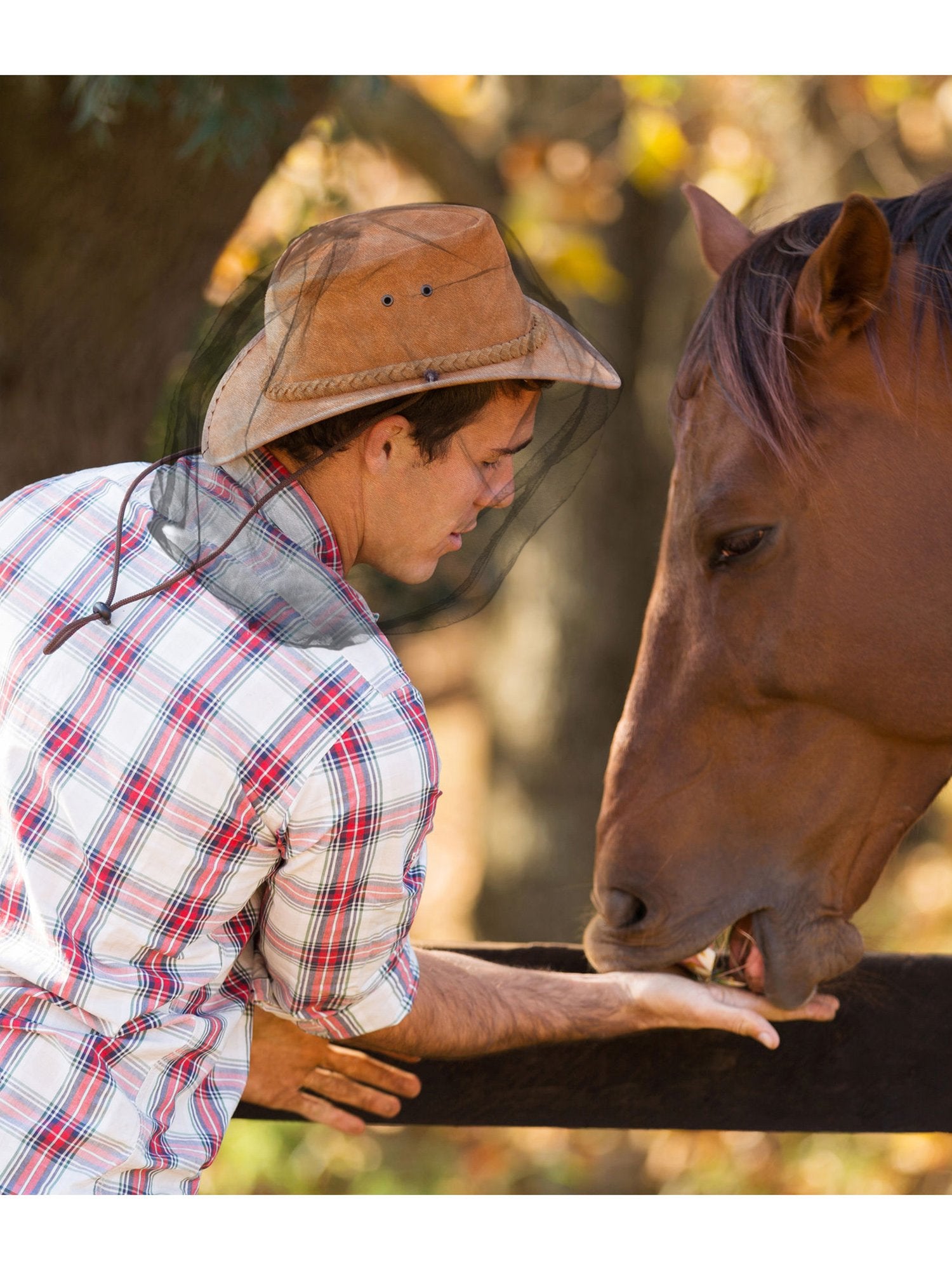 2. This head net can be worn directly, it would be better to wear it with a hat with brim, which helps a lot.