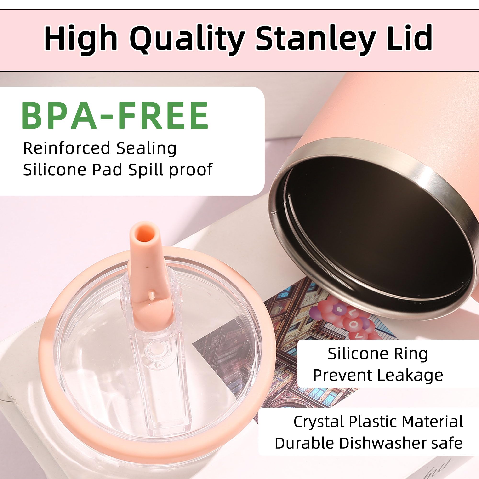 - 【High-quality materials】- This reusable bottle cap is made of food-grade PP, ensuring you can enjoy the pure taste of your beverages. BPA-free plastic is food-safe, odor-free, and reusable for daily use with your Stanley 40oz cups. It is wear-resistant and prevents odors, and is dishwasher safe. It won't deform for a long service life.