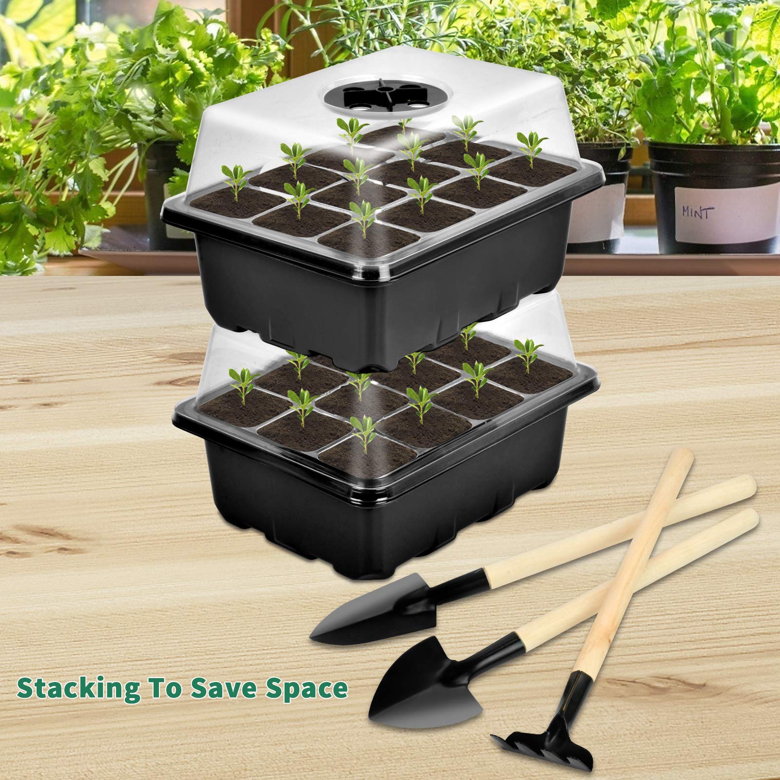 2 pieces indoor greenhouse cultivation, mini greenhouse cultivation set, cultivation tray with lid, plastic cultivation trays with 3 small garden tools, 12 holes, ideal for seed germination and plant growth