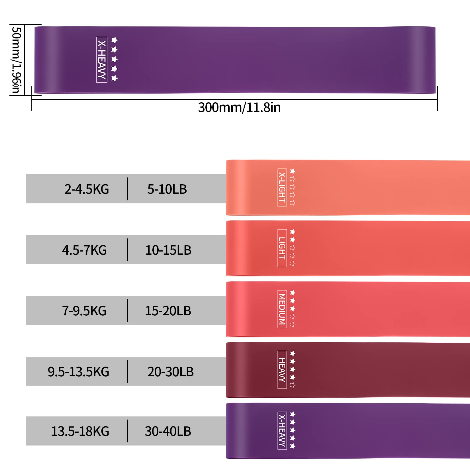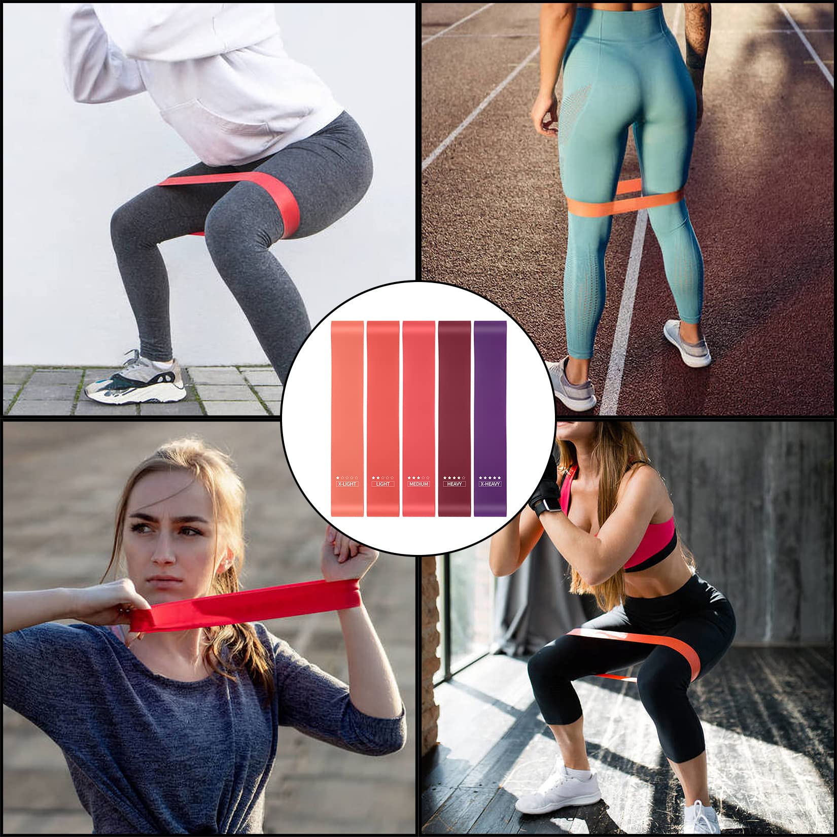 5 PCS exercise bands, resistance bands, fitness bands, resistance bands with 5 PCS different resistance levels, for stretching yoga, with carrying bag and instructions (A)