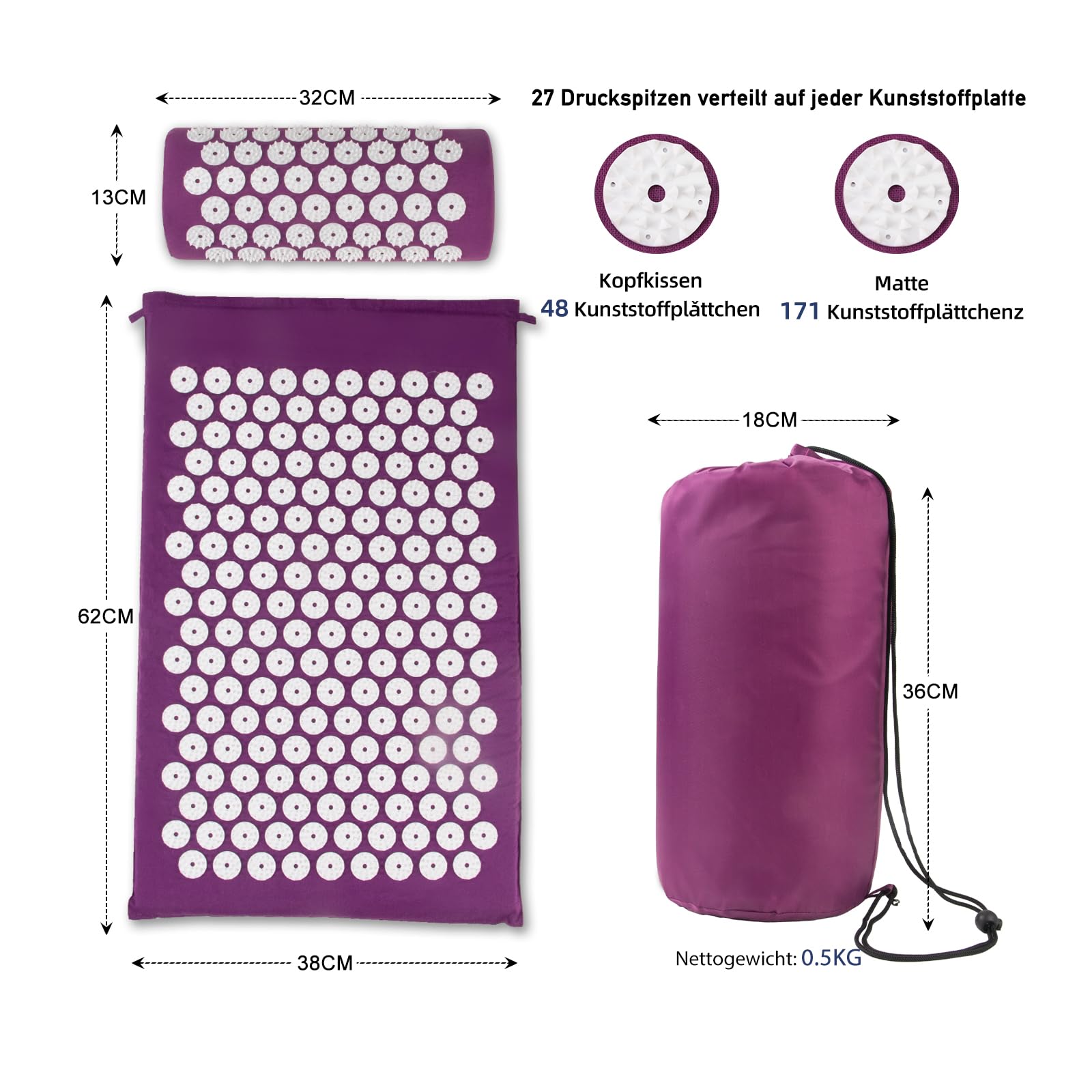 Acupressure mat Acupressure set Acupressure mat with pillow Nail mat Flower field mat Needle mat/needle stimulation mat Needle board Yantra mat Prana mat Acupuncture mat, purple