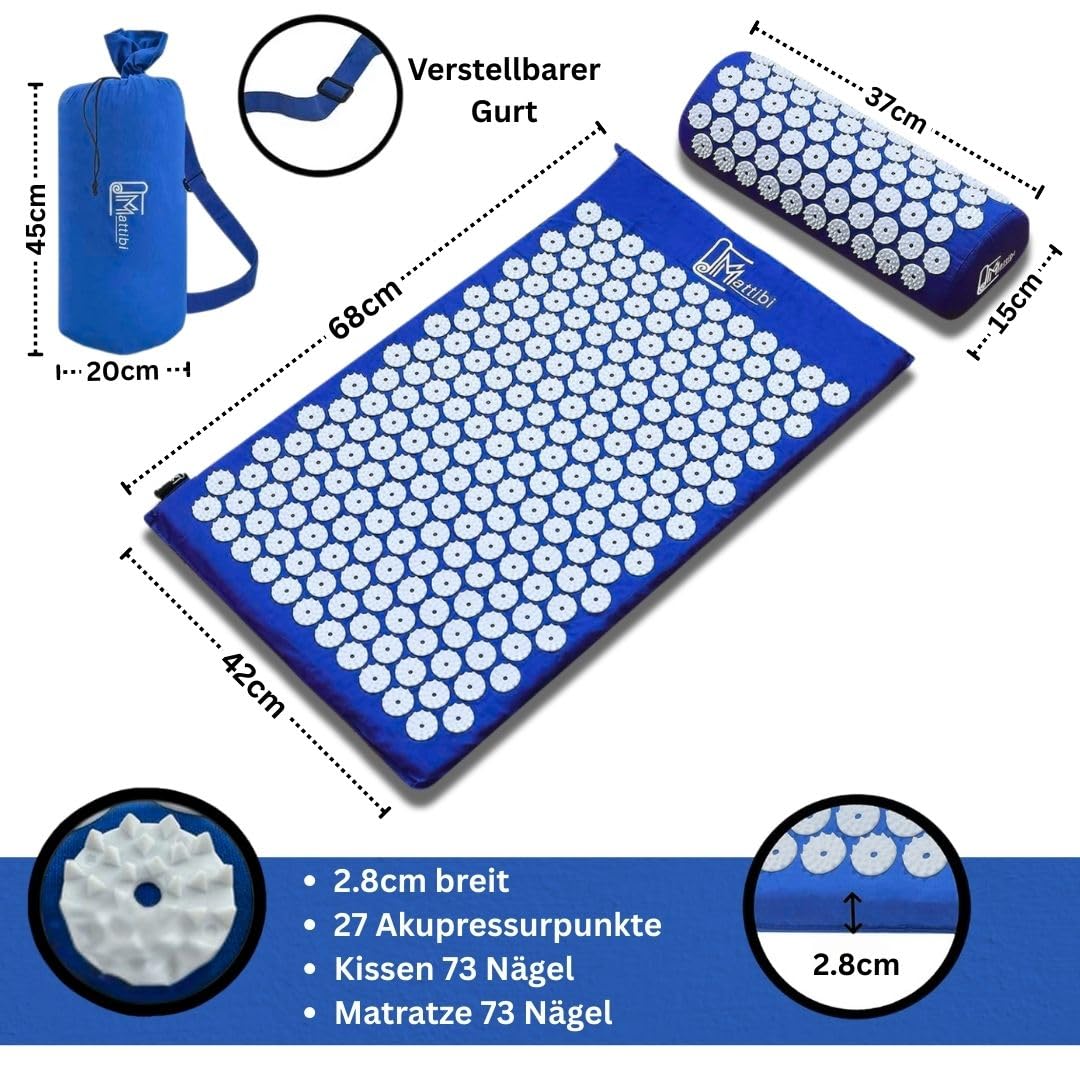 Brand: Mattibi Color: Blue Characteristics: ππ‘π§πππππ πππ‘π π‘ππ¨π ππ₯π§ πππ₯ ππ‘π§π¦π£ππ‘π‘π¨π‘π The perfect acupressure mat with pillow for back, neck,... Read more