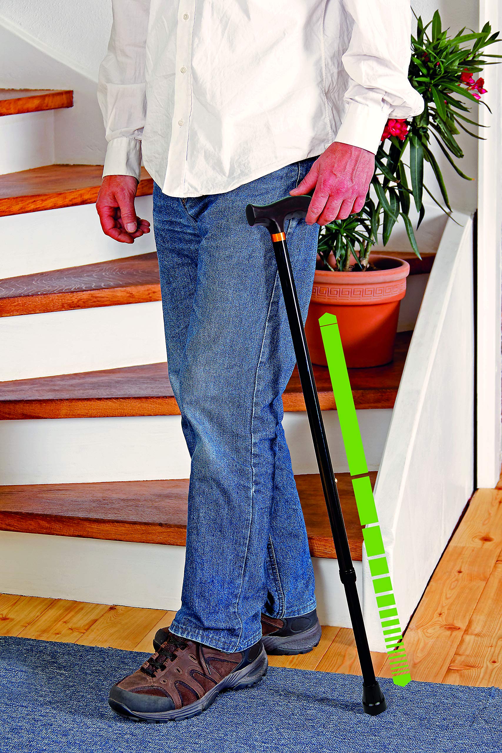 - The anatomically shaped handle makes the walking stick comfortable to hold. The rubber base provides additional anti-slip protection.