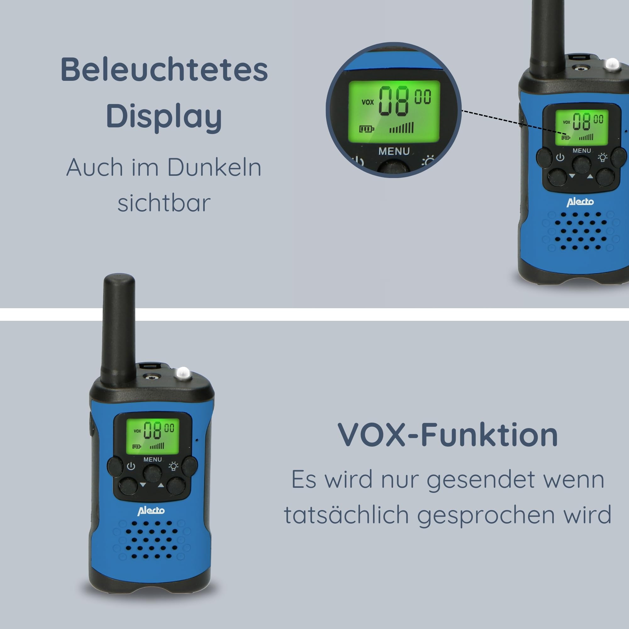 Details: Two sustainable walkie-talkies for outdoor sports Alecto FR175BW walkie-talkie set Set of 2 walkie-talkies Integrated flashlight Range of up to 7 kilometers Long standby time (up to 24 hours) Ideal for outdoor sports The Alecto FR175BW walkie-talkie set offers many advantages and lots of fun. Whether camping, on weekends, on vacation, or for outdoor sports such as snowboarding, fishing, mountain biking, etc. This walkie-talkie is an asset to any situation. Thanks to its long range of 7 kilometers, the built-in flashlight, and the easy-to-use system, this walkie-talkie set is the right choice for any task. A walkie-talkie set that meets all expectations These sustainable outdoor walkie-talkies allow you to stay in touch for free during any activity. This set has a belt clip and a compact size. The walkie-talkies use 8 channels and search for available channels automatically. What's more, it's incredibly practical that this set can also be used with the Alecto FRH-10 headset, keeping your hands free. This allows you to use the walkie-talkies legally and safely even while driving. A clever walkie-talkie set. An important aspect of this set is the fact that it comes with a rechargeable battery. The charging station for charging the walkie-talkies is, of course, also included. This means you can save yourself the hassle of buying new batteries. These durable outdoor walkie-talkies have a long standby time of around 24 hours. This means you can use this walkie-talkie practically all day long. This walkie-talkie set is also very useful in the dark. In addition to keeping you in touch, it also has a built-in flashlight. This is very useful for orientation at night while camping. In addition, the system is simple to use, and this set has all the features you would expect from a walkie-talkie set. Scope of delivery Walkie-Talkie 2x Charging station Battery 2x Belt clip 2x Adapter