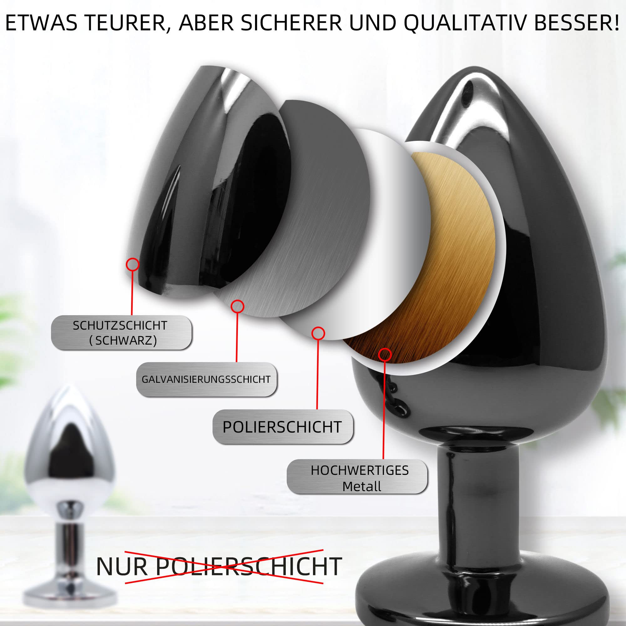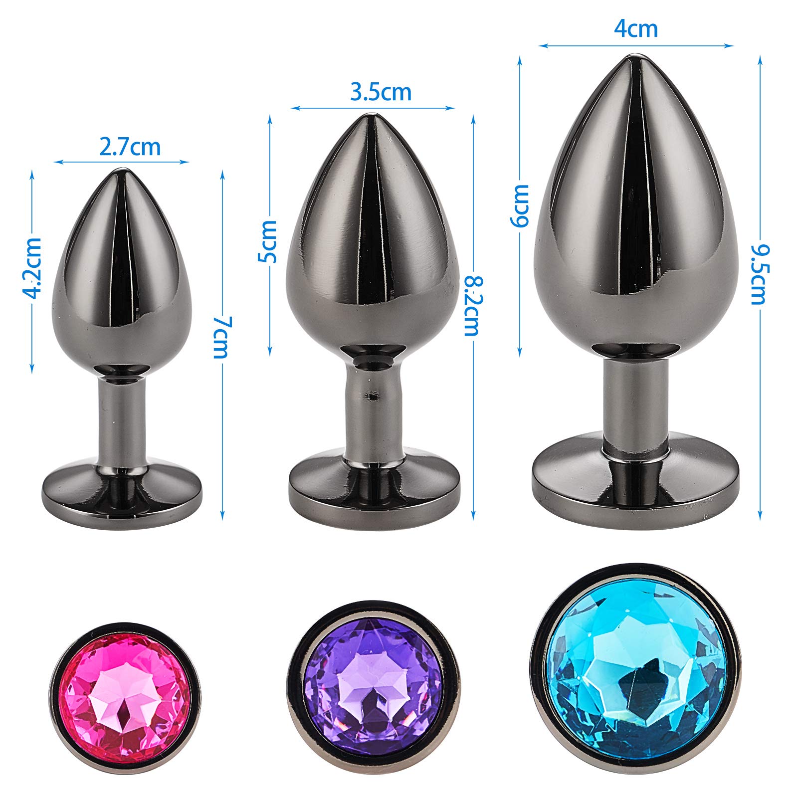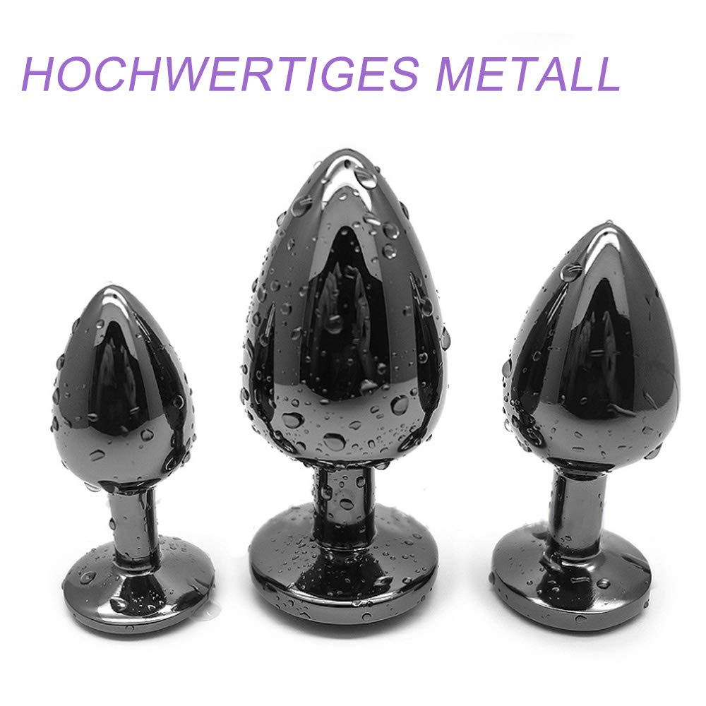 AllesCosy Anal Plug Butt Plug 3 Pieces Set Metal Anal Plug Dark Grey/Black Gunmetal Large Medium Small Anal Plug Sex Toy Suitable for Beginners for Women Men Couples