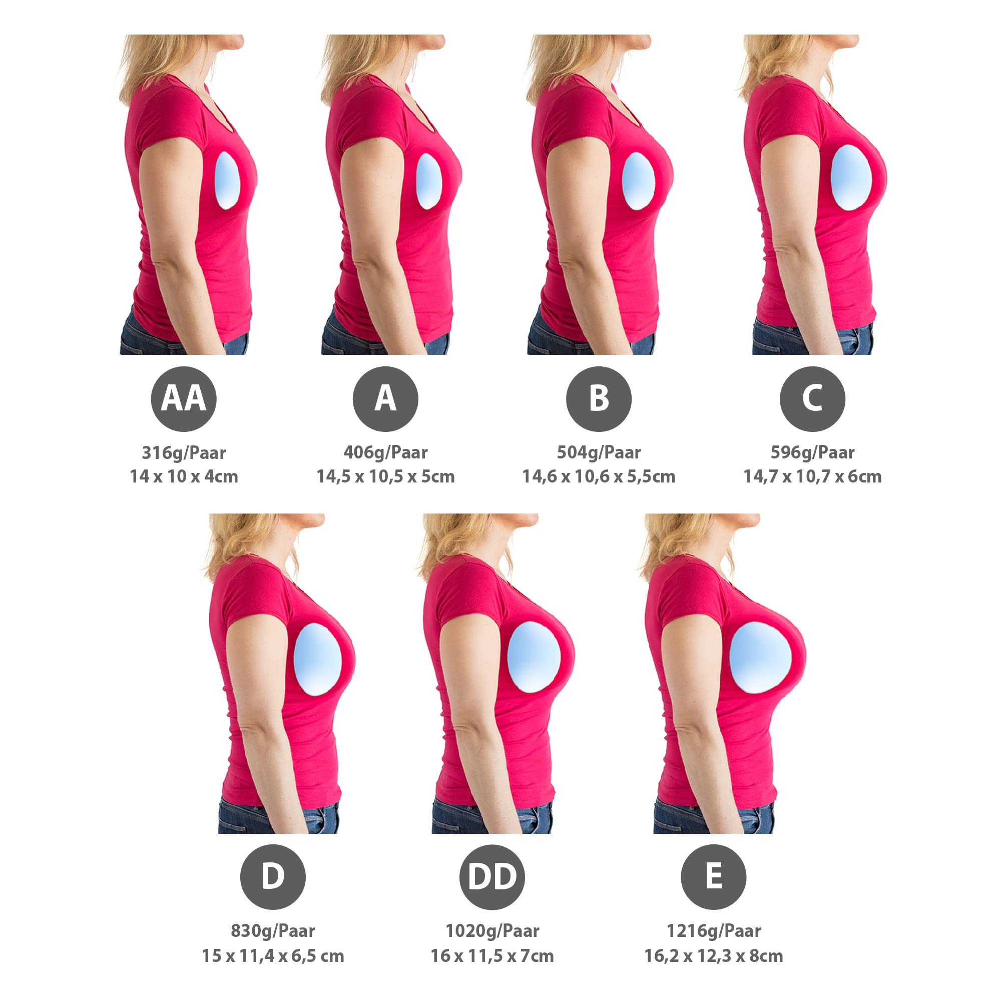 Details: Very well-made and completely natural-looking and feel-good fake breasts. Advantages: Silicone breasts look and feel real thanks to their high-quality workmanship. The material feels realistic and creates a realistic sensation when worn. Perfect for anyone who wants to beautifully enlarge their breasts. Women who have had mastectomies or who have small breasts can now feel much better and gain a bit more self-confidence. Silicone breasts bounce beautifully like natural breasts. Silicone breasts are ideal for women who want a fabulous shape. They adapt very well to the body shape and body heat. For men, crossdressers, transgender people, etc. These wonderful breasts can also give men the right feeling and emphasize their sense of femininity. Product details. Material: Silicone. Care instructions: Please wash with lukewarm water and a mild detergent and allow to air dry. For storage, we recommend storing the inserts so that they do not come into contact with each other. Dimensions: Cup AA, weight: 316g/pair. Dimensions (LWH): 14 x 10 x 4cm. Cup A weight, 406g/pair. Dimensions (LWH): 14.5 x 10.5 x 5cm. Cup B weight, 504g/pair. Dimensions (LWH): 14.6 x 10.6 x 5.5cm. Cup C weight, 596g/pair. Dimensions (LWH): 14.7 x 10.7 x 6cm. Cup D weight, 830g/pair. Dimensions (LWH): 15 x 11.4 x 6.5 cm. Cup DD weight, 1020g/pair. Dimensions (LWH): 16 x 11.5 x 7cm. Cup E weight, 1216g/pair. Dimensions (LWH): 16.2 x 12.3 x 8cm. These breasts emphasize and show off femininity wonderfully. Very attractive, fits perfectly, and looks wonderful under clothing! Please note: They are not self-adhesive, but they fit very well in bras. Slight dimensional deviations (+/- 3%) may occur. Caution! The color may vary slightly depending on the lighting in the photos (natural/artificial), the material batch, or the monitor settings.