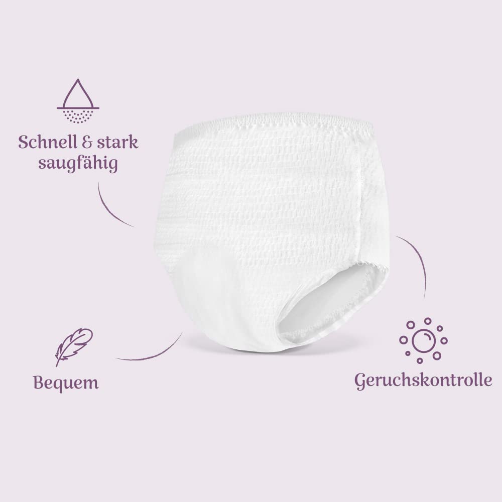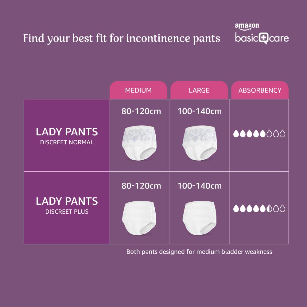 - Bladder weakness – with an all-round comfortable fit, the Basic Care Lady Pants Discreet Large has an absorbent core with double leak barriers.