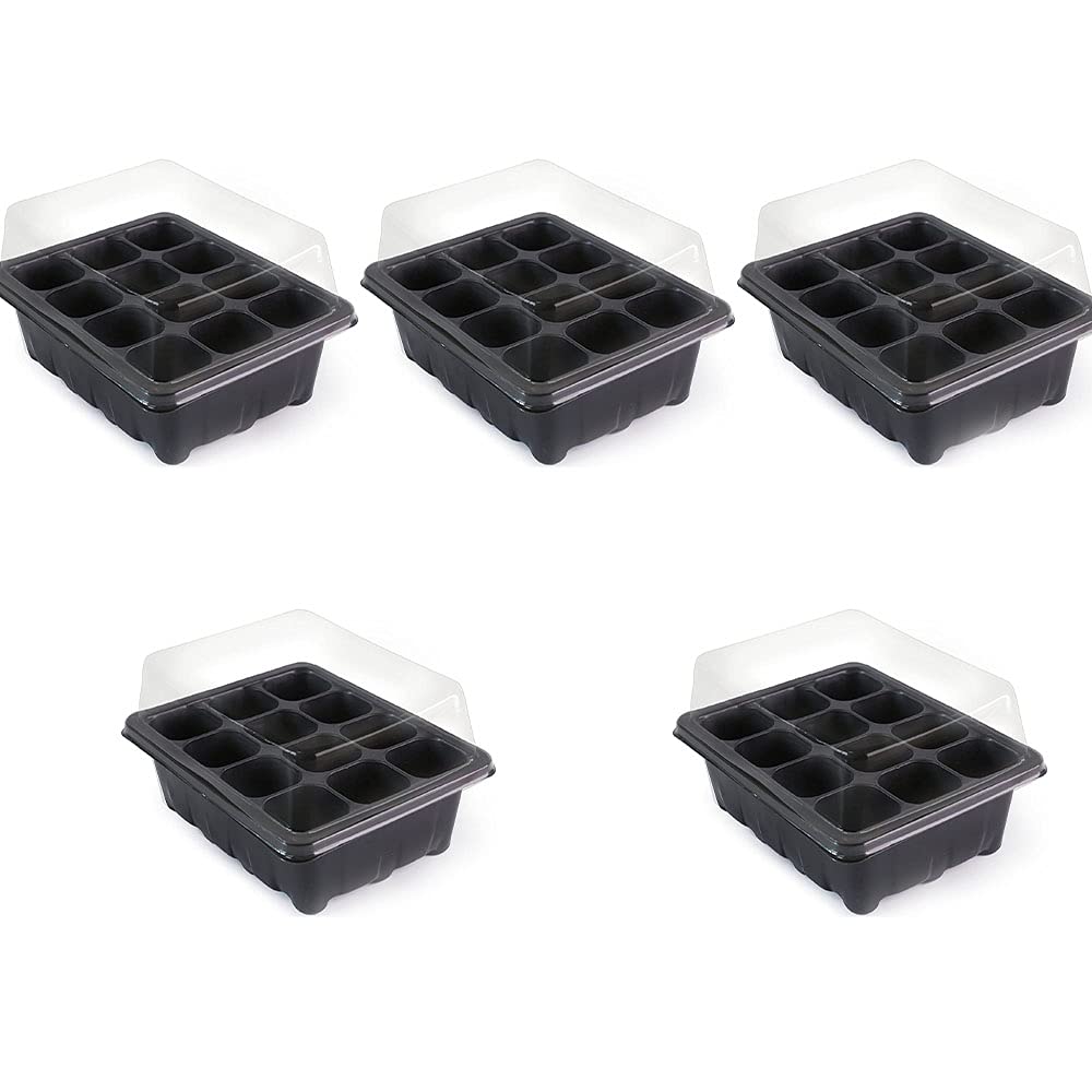 ANCLLO Indoor Greenhouse Propagator, 5 Pack 60 Cells Mini Greenhouse Propagation Set Seedling Starter Trays Greenhouse Propagation Tray with Domes and Base for Starting Seeds