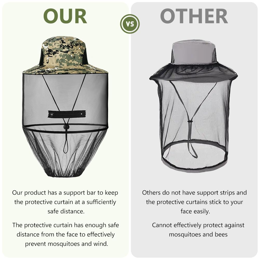 - 【Easy to Use and Store】The travel mosquito hat is super lightweight and doesn't cause pressure. Brim width: 9cm; Hat diameter: 36cm; 20cm when folded; Hat circumference: 55-58cm; Easy to use, can be worn directly, suitable for most head shapes. Comes with a storage bag so you can take it anywhere.