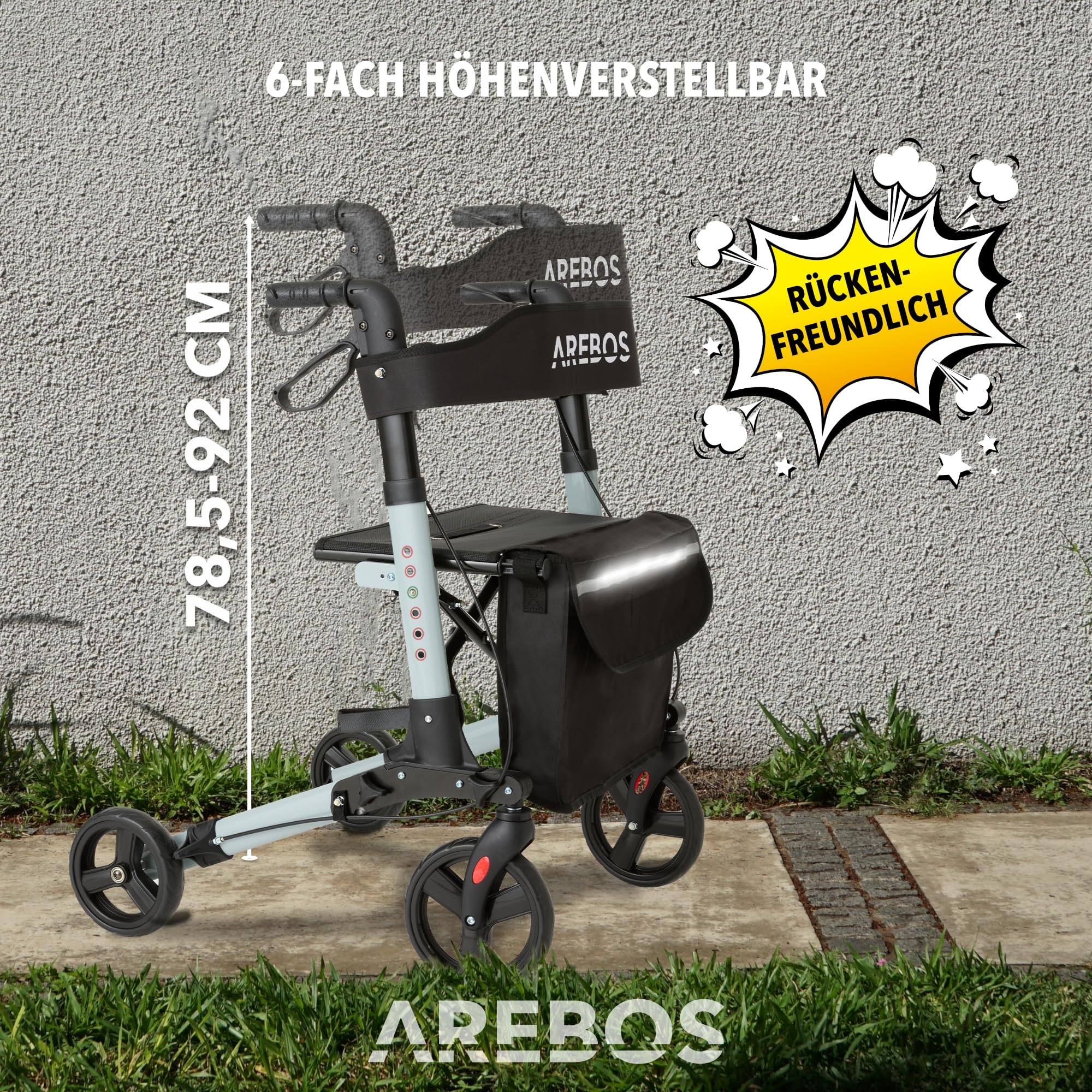Arebos Lightweight Rollator Aluminum | Travel Rollator with 6-Way Height Adjustment | Foldable | Includes Cane Holder and Removable Shopping Bag | Walking Aid with Locking Function | Black