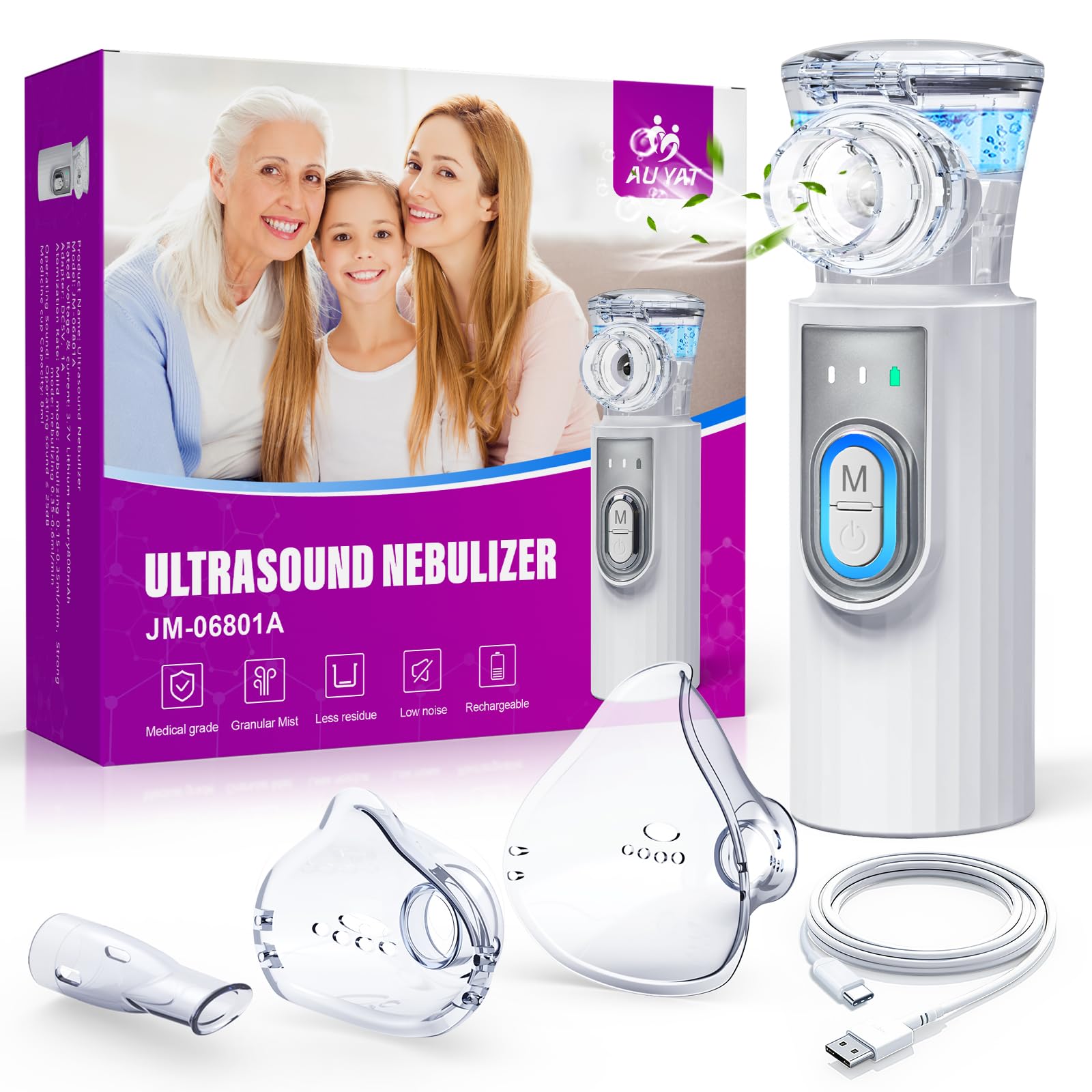 AU YAT Inhaler, Rechargeable USB C Inhaler for Children with Portable Design, Super Quiet Inhaler, Efficient Nebulizer Inhaler for Children on the Go