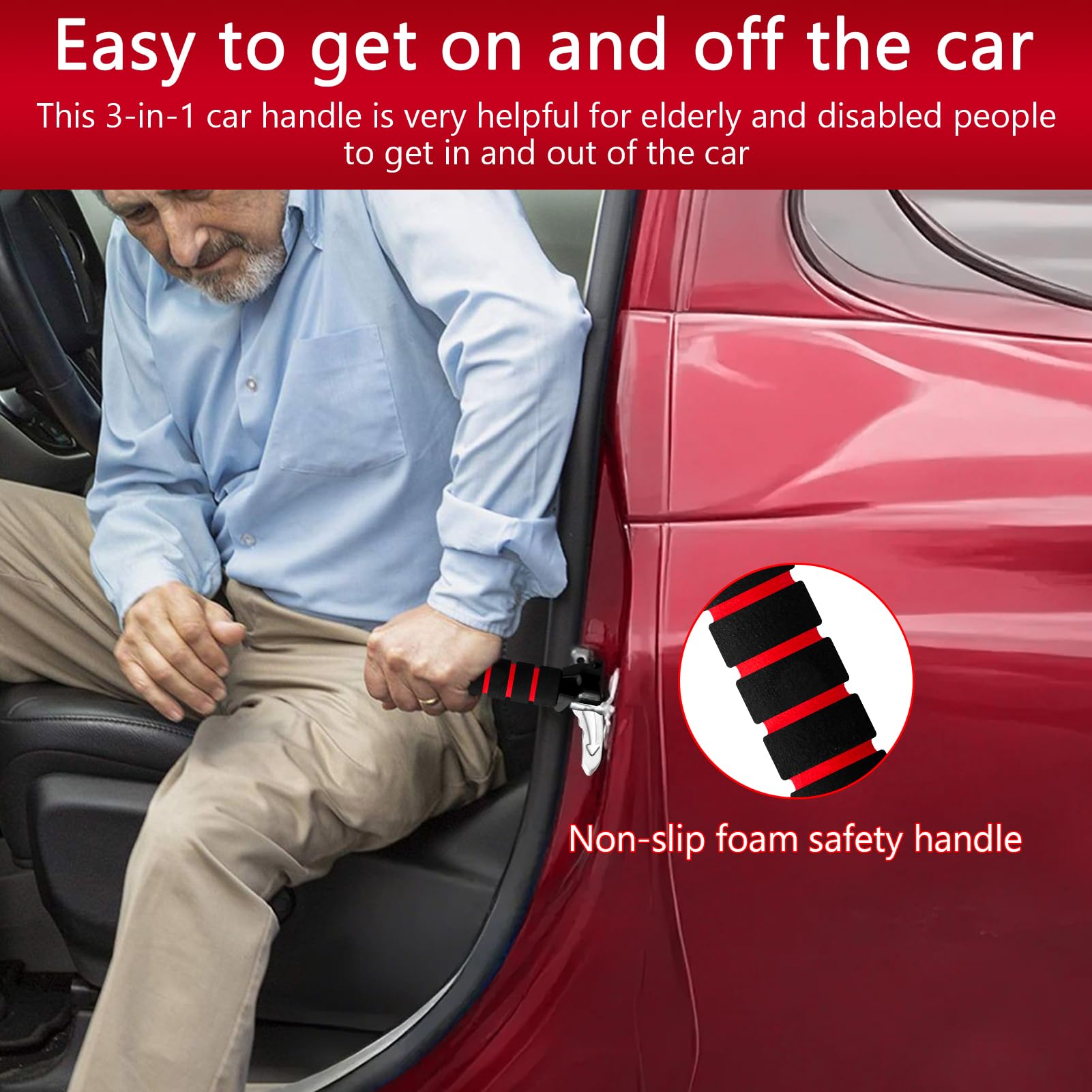 - The car door assist handle is very suitable for the elderly, injured people, disabled people, pregnant women, children and anyone who needs help getting in and out of the car.