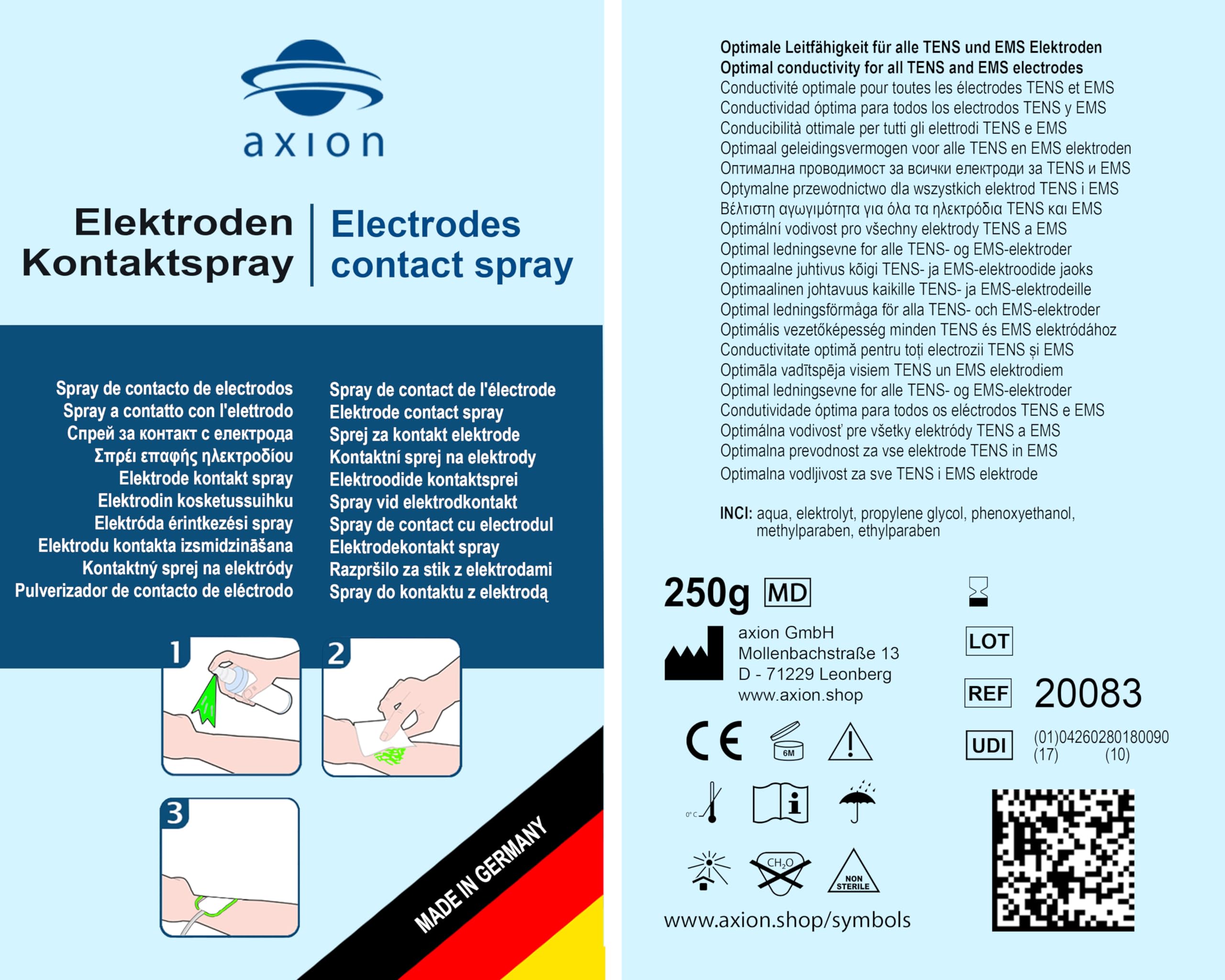 axion Electrode Contact Spray for TENS & EMS Devices | Adhesive Electrode Accessories | Extends the lifespan of adhesive electrode pads | Skin-friendly | Certified Medical Device