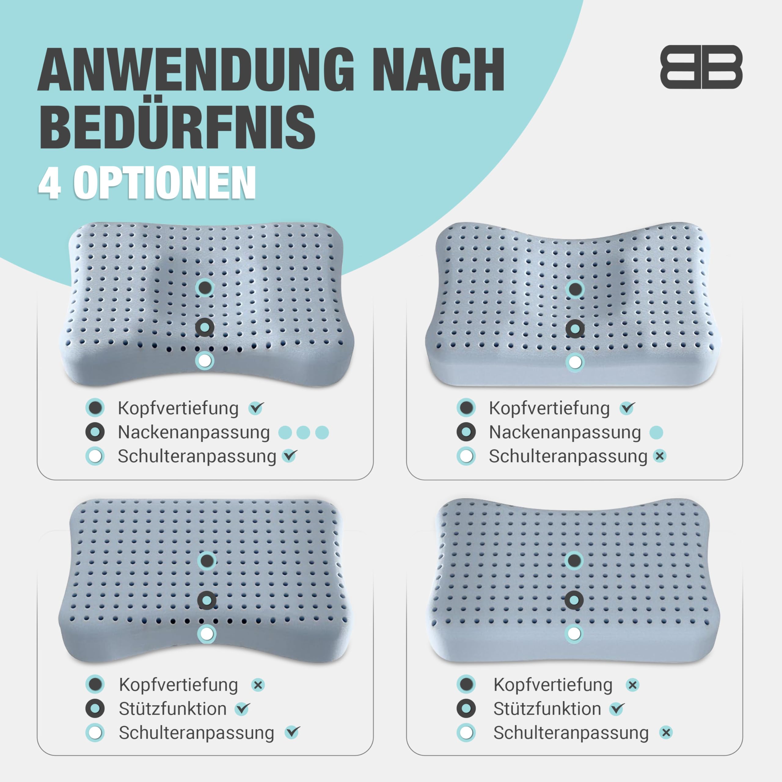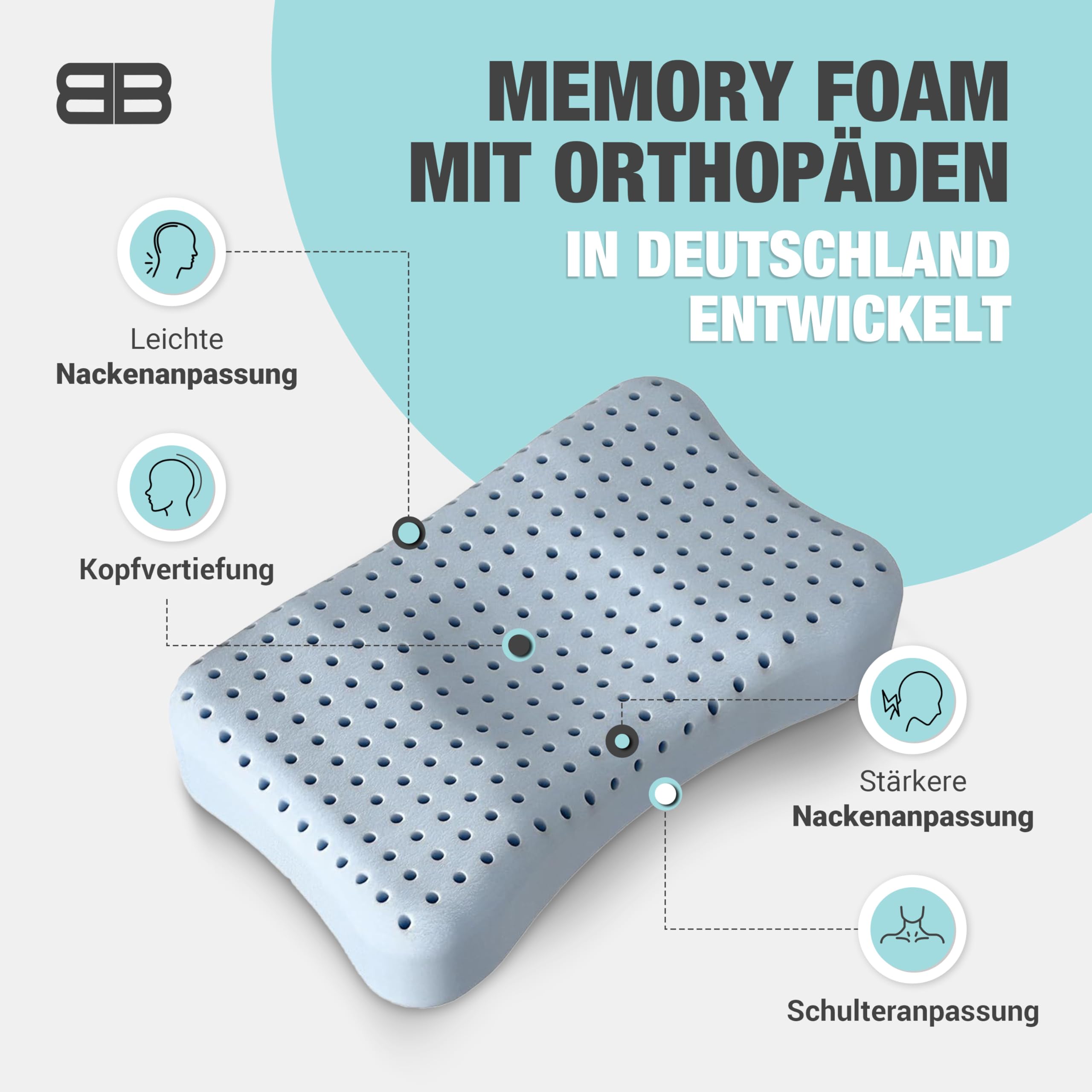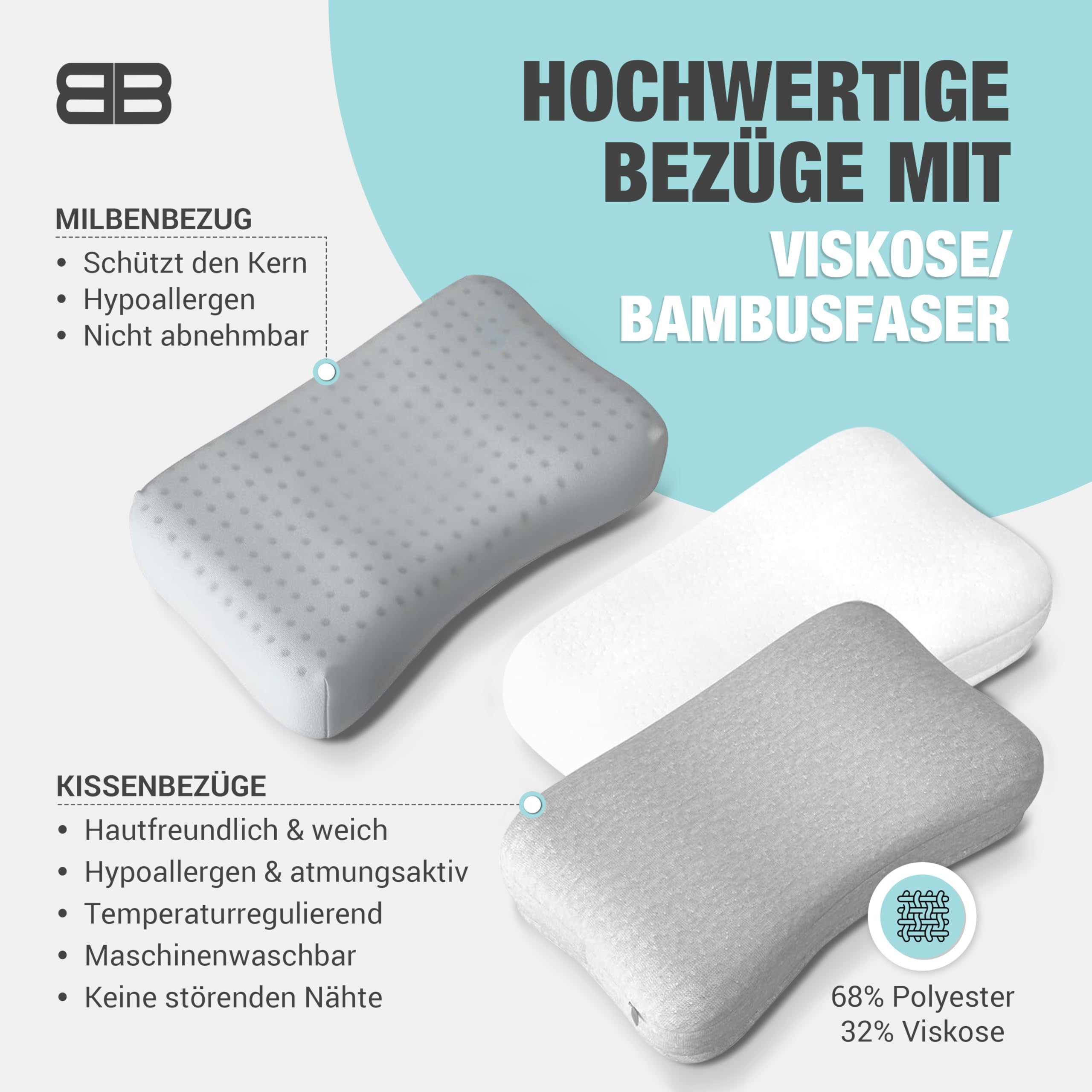 BACK BODYGUARD - The softer neck pillow, ergonomic pillow with 2 covers, orthopedic pillow - firmness: medium - soft (50 x 30 x 12 cm)