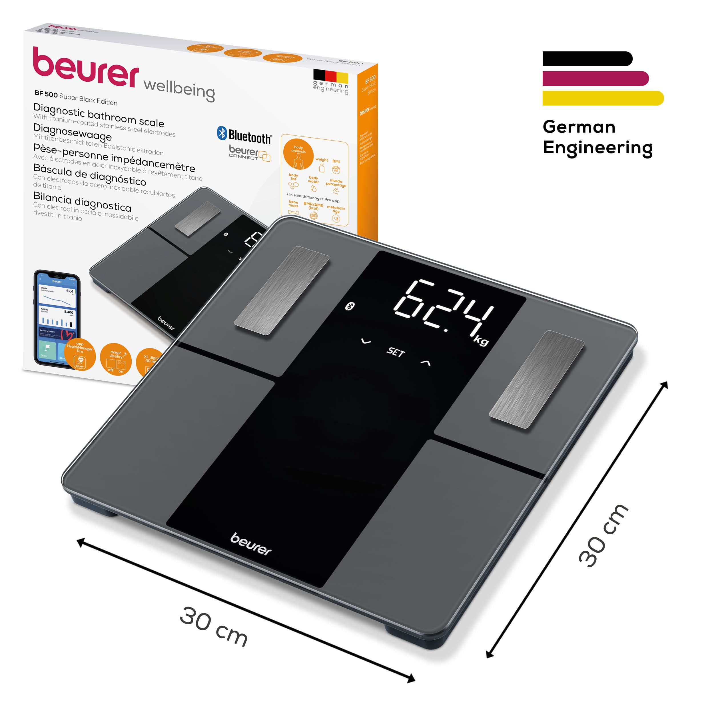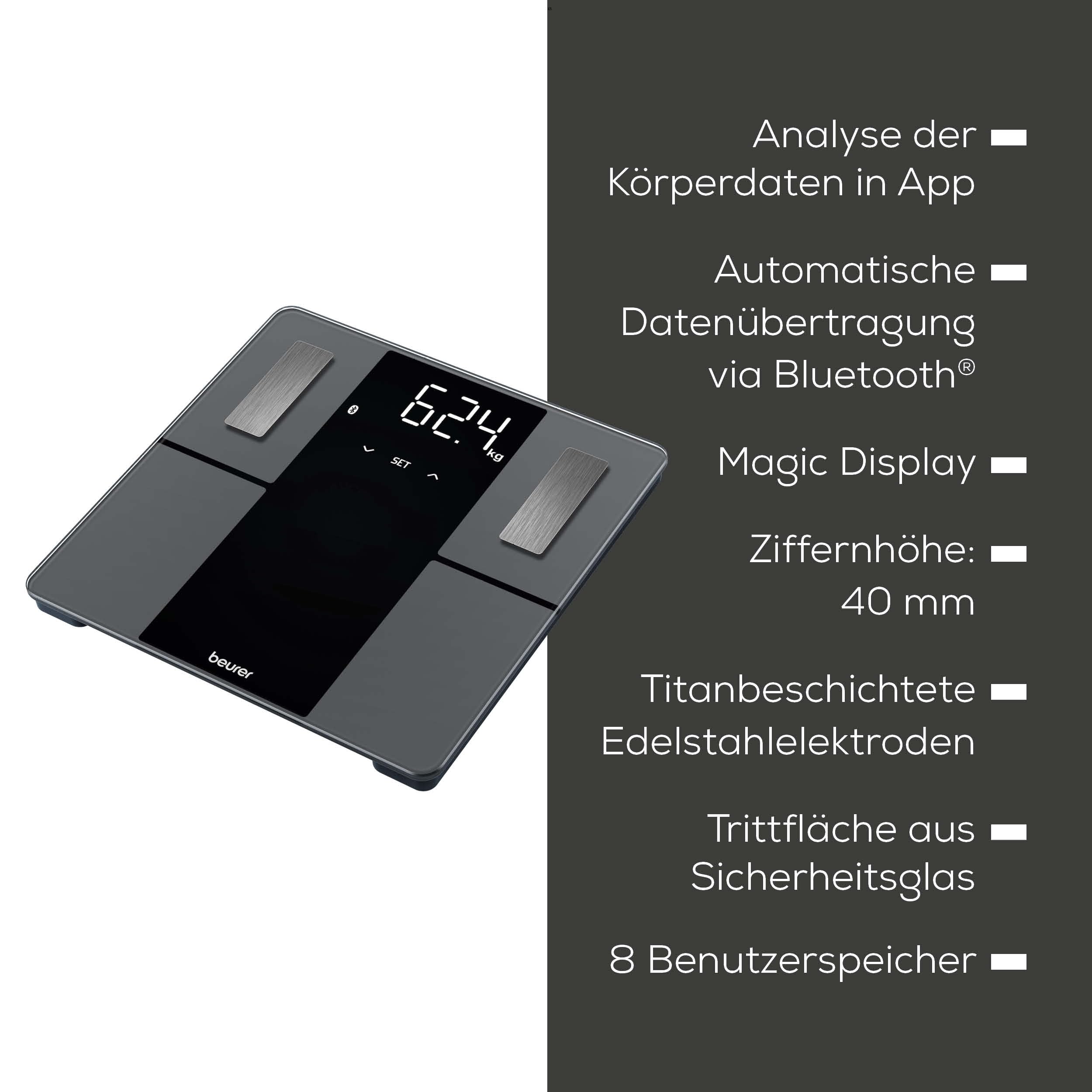 - WITH APP: The measurement data of up to 8 people is transferred via Bluetooth to the "beurer HealthManager Pro" app and graphically evaluated – however, the scale can also be used without the app