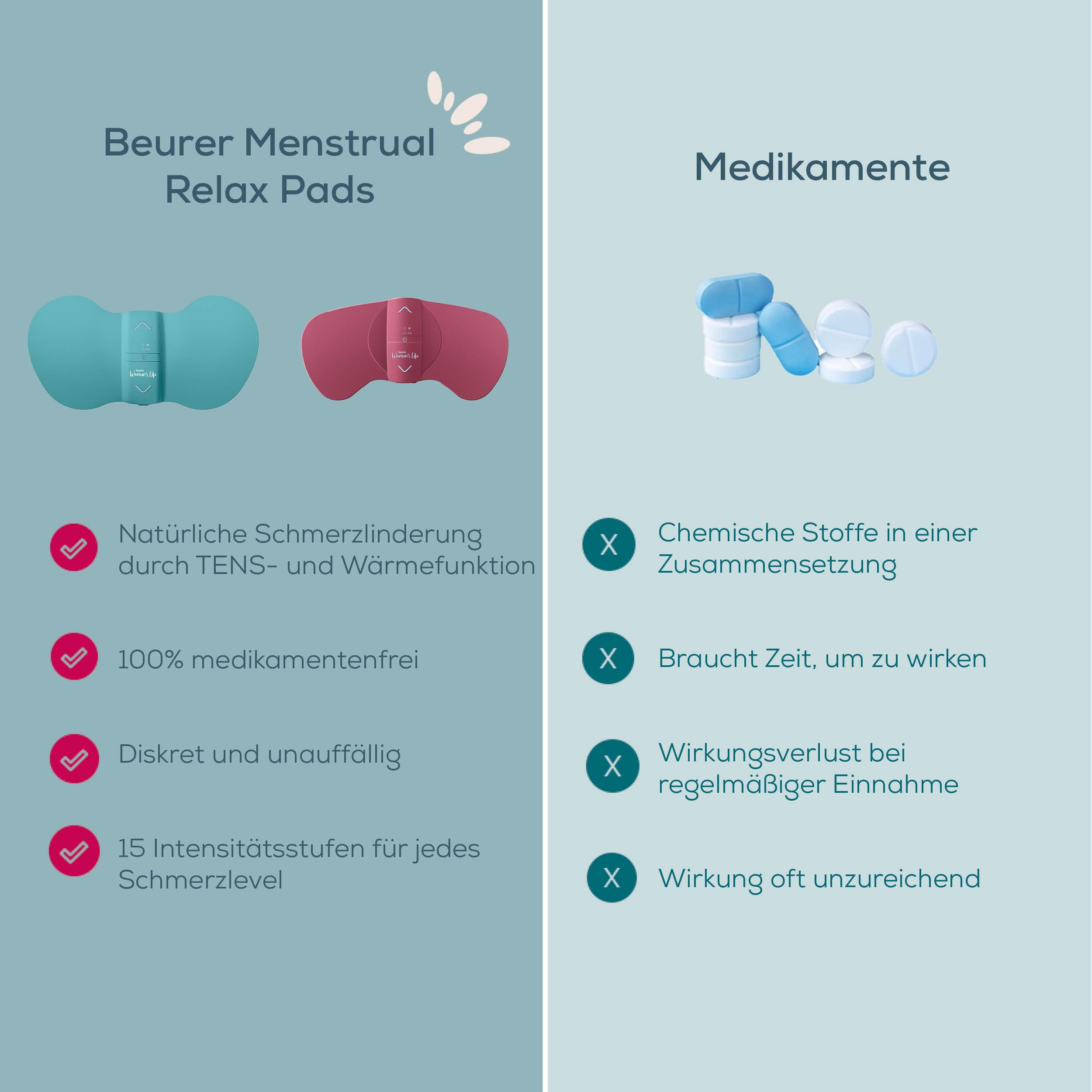 The EM 50 Menstrual Relax menstrual pad uses transcutaneous electrical nerve stimulation (TENS) and heat to provide rapid pain relief from menstrual pain and endometriosis pain. Clinically validated pain relief is achieved naturally and without the need for medication. The pad also features a switchable heat function that can be used both with the TENS function and independently. Because the pad is thin and has a soft, flexible structure, it adapts well to the body. It adheres to the skin and can therefore be worn discreetly and flexibly under clothing. 15 TENS intensity levels allow for individual adjustment to the severity of the pain. The pad can be used several times a day as needed. Thanks to the built-in rechargeable battery, the EM 50 is reusable and can be used for six applications per battery charge.