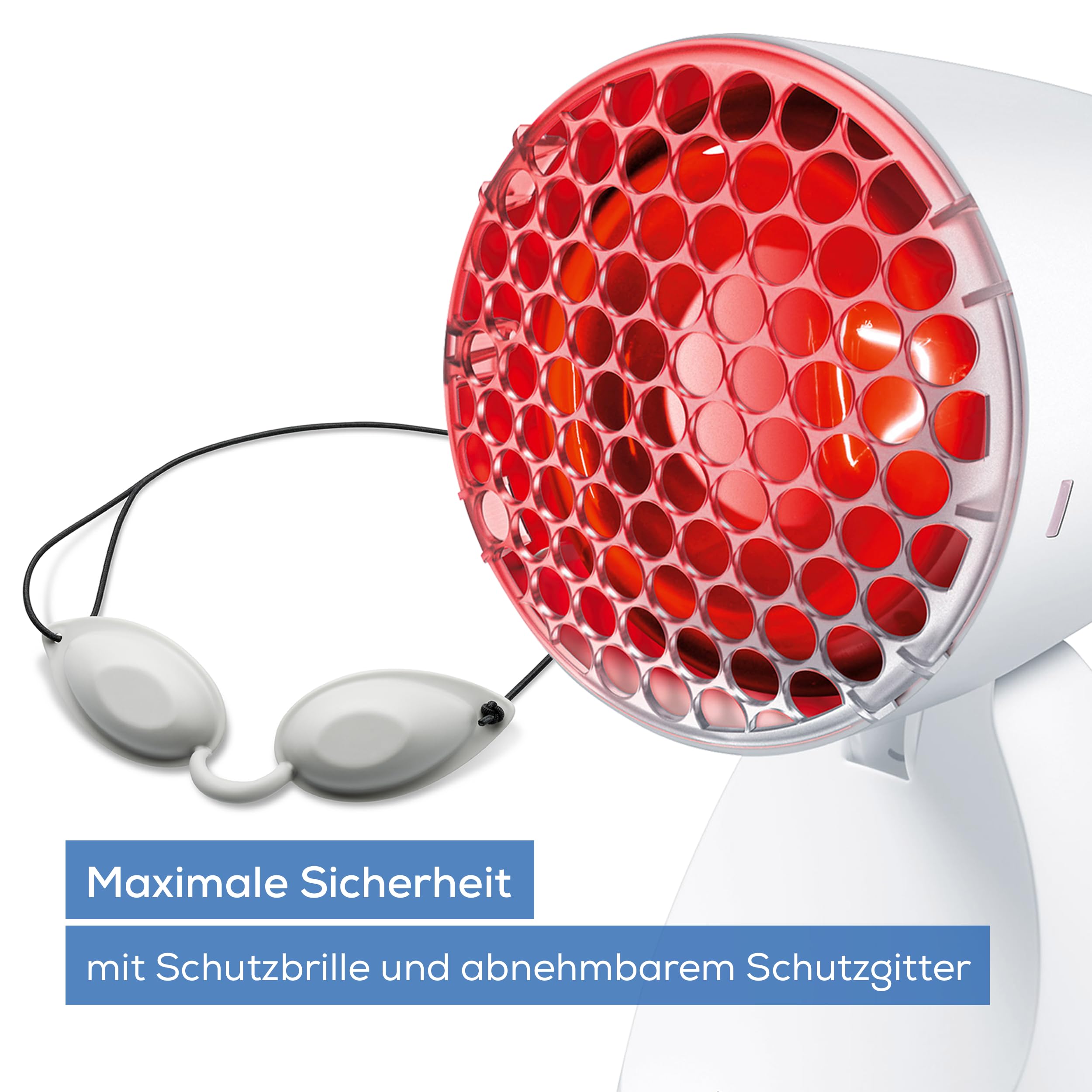 Beurer IL 11 infrared lamp with protective grille, medical device with soothing warmth for use in cases of colds and muscle tension, 5 inclination levels, including protective goggles, white