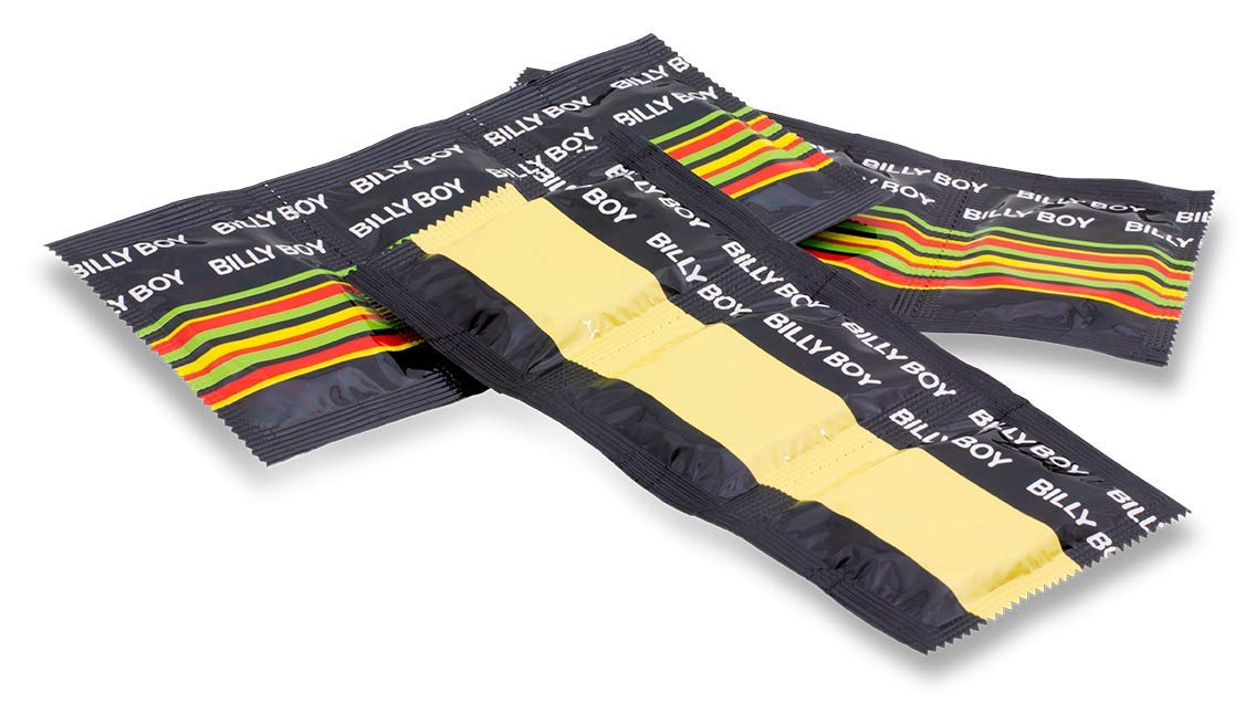 Condoms should always be handled with care. Please note the expiration date printed on the packaging and the sealed envelopes – do not use the condom after this date! Store condoms in a cool, dry place away from heat and direct sunlight. Condoms do not harm the body and do not cause side effects. However, intolerances in the form of allergic reactions (e.g., latex allergy) or even anaphylactic shock can occur. If you experience any discomfort or irritation, discontinue use of the condom and consult your doctor. Each condom is individually electronically tested. When used correctly, BILLY BOY condoms protect against pregnancy and the transmission of pathogens. However, no contraceptive can guarantee 100% protection against pregnancy or infectious diseases. If the condom tears or bursts during use, seek medical advice as soon as possible, but within 72 hours. Carefully open the foil seal at the marked point (≫open here≪). This allows the sealing foil to be torn open cleanly without damaging the condom. Caution: Sharp-edged objects, jewelry, or pointed fingernails could damage the condom. Never use condoms from damaged or already opened sealed envelopes! Hold the reservoir firmly with your thumb and index finger so that no air pocket forms. Pull back the foreskin completely and roll the condom, starting at the reservoir, completely over the erect penis before the penis and your partner's body come into contact. This is the only way the condom can help prevent sexually transmitted infections and pregnancy. If the condom does not unroll easily, it is unrolled in the wrong direction. In this case, do not turn the condom over and use it again, as this could transfer bodily fluids to your partner. Use a new condom and pay attention to the unrolling direction. If you notice that the condom is slipping off or is too tight, check it for any damage, as this could lead to a tear. Remove the penis before it becomes flaccid! Hold the condom at the base of the penis to prevent it from slipping off. Used condoms belong in the trash, not in the toilet. Wash your penis and hands before resuming sex. Condoms are intended for single use only!