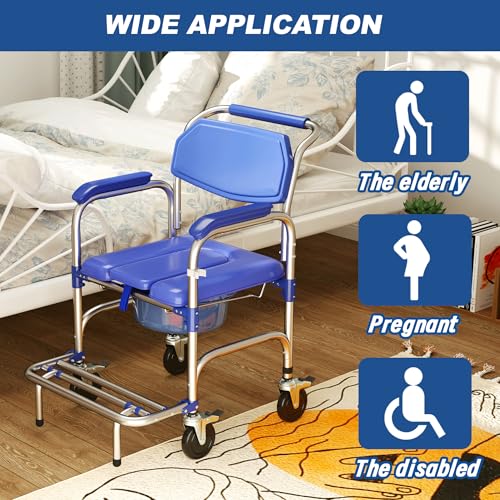 - 【Durable and Non-Slip】This commode chair with casters for seniors is constructed of high-quality aluminum alloy, making the chair body sturdy, durable, and resistant to rust. The 360-degree rotating universal damping wheel design with brakes allows for effortless rolling of the commode chair, providing free and smooth movement, reducing the burden of care for the elderly, patients, and the disabled.