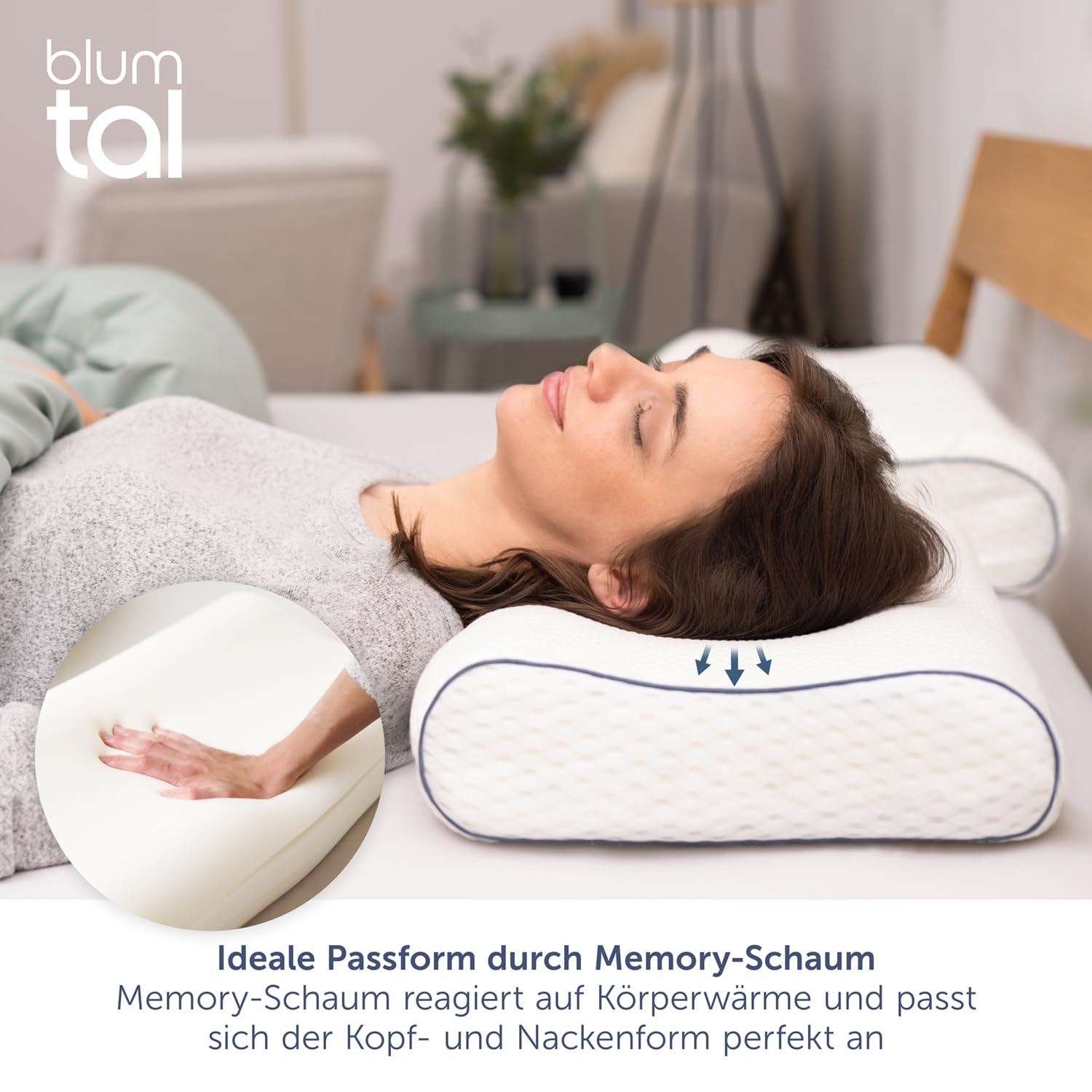 Blumtal neck support pillow - orthopedic pillow - memory foam pillow - Oeko-TEX certified pillow for neck pain - ergonomic pillow for side sleepers - neck pillow for bed - neck pillow