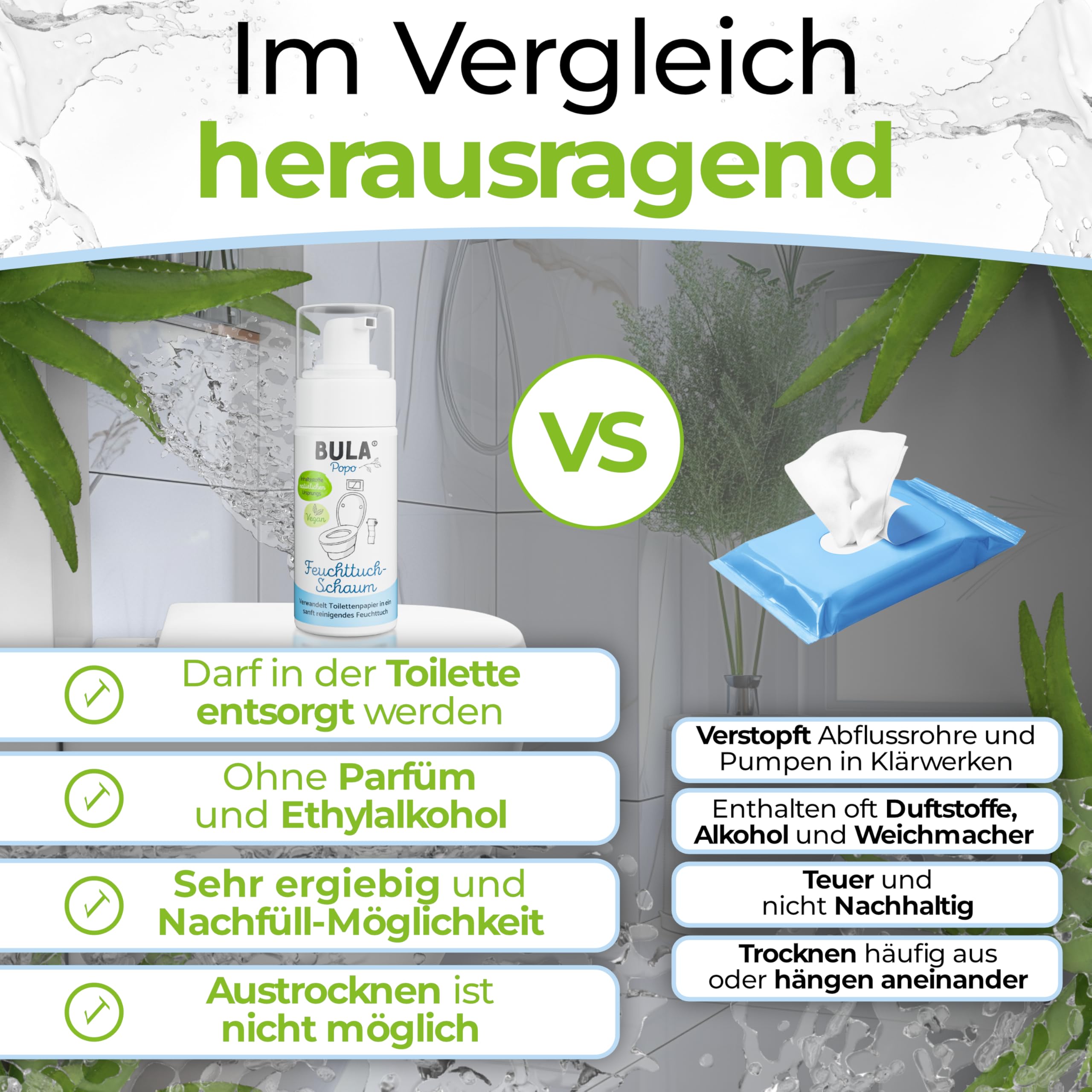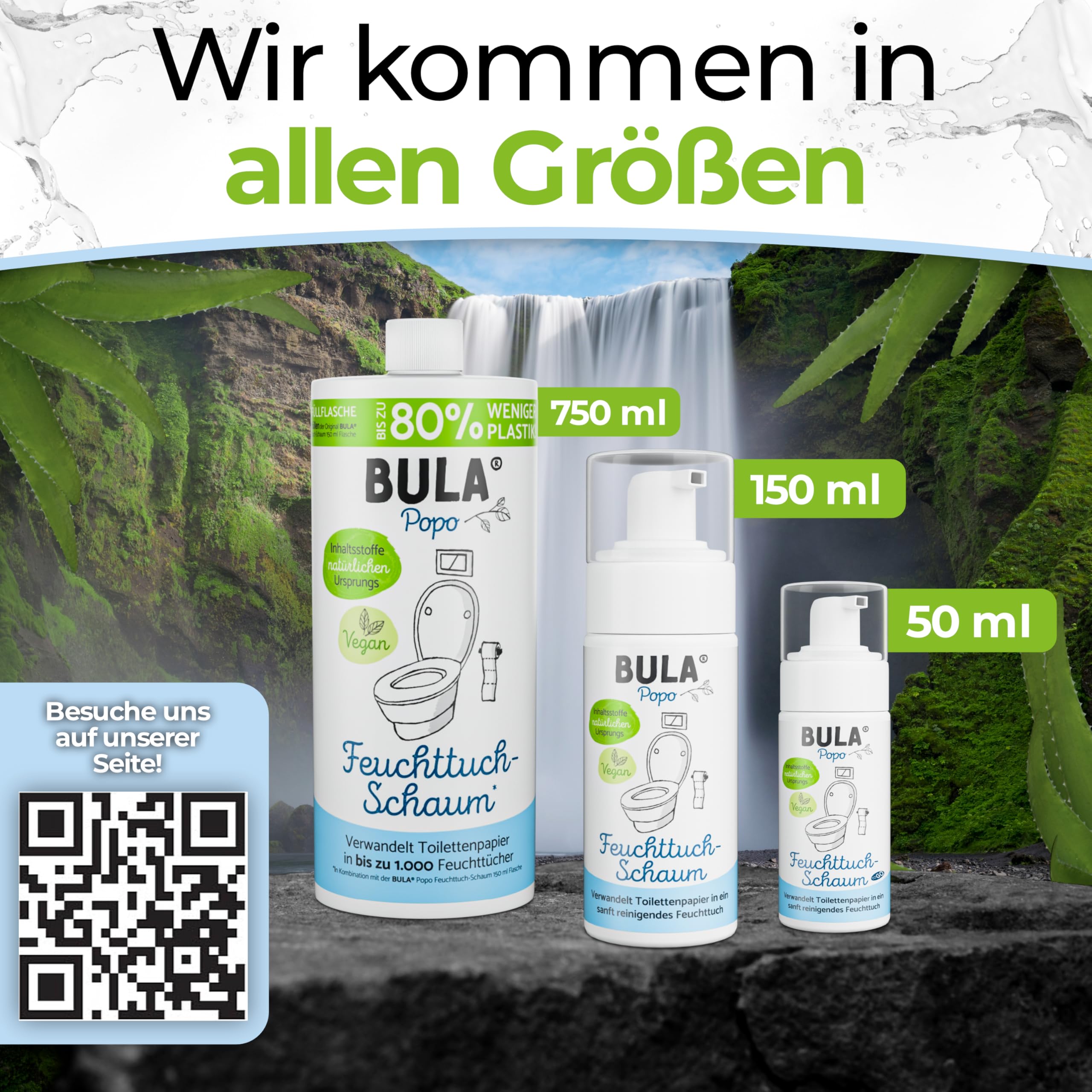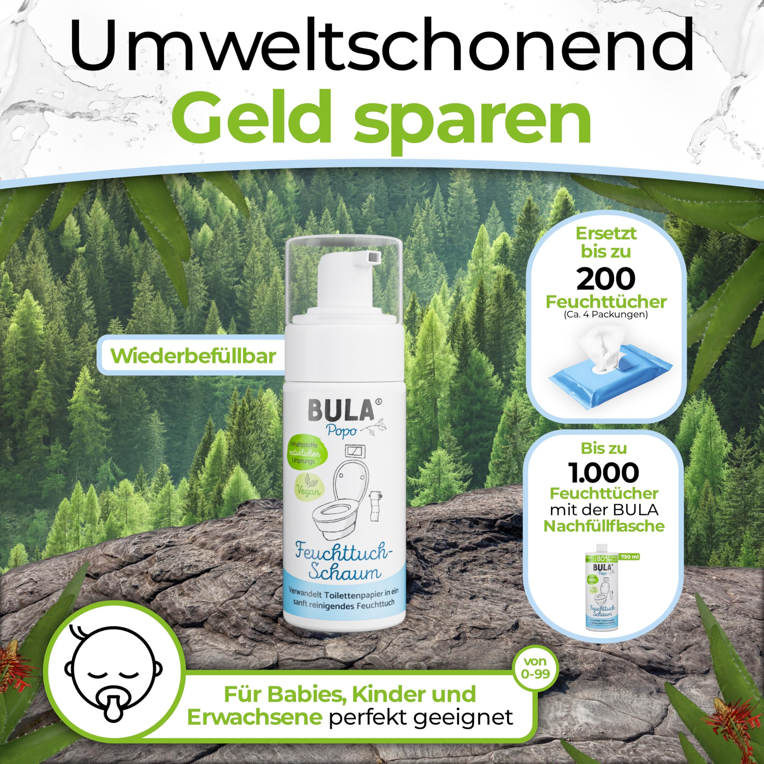 BULA® Popo (Baby and Toilet) Wet Wipe Foam 150ml for your toilet paper | Sustainable alternative for over 200 wet wipes | Natural ingredients