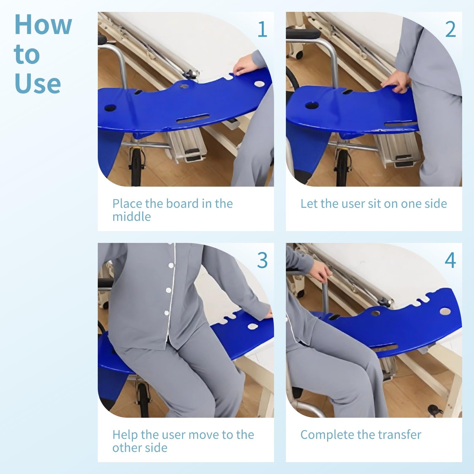 - 【Easy to Use】This transfer board is easy to use. Simply place it midway between the areas that need to be transferred and then assist the user in moving from one side to the other. Note: Patients must have two healthy hands and good balance to use it independently; otherwise, assistance from an attendant is required.