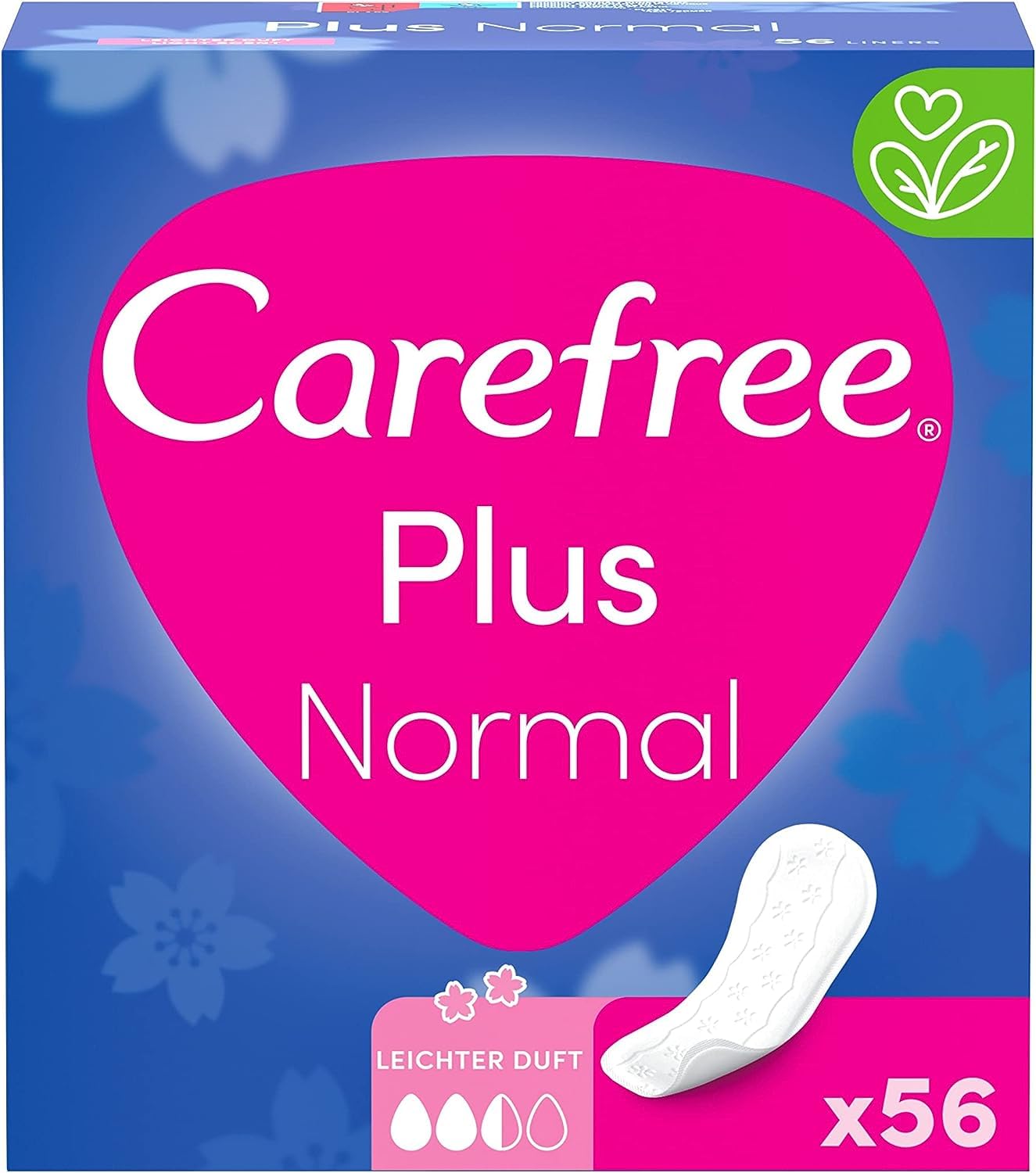 -  Scope of delivery - 1 x 56 pieces Carefree panty liners Plus Normal with light fragrance, supportive to tampons or menstrual cup during the period, soft as cotton
