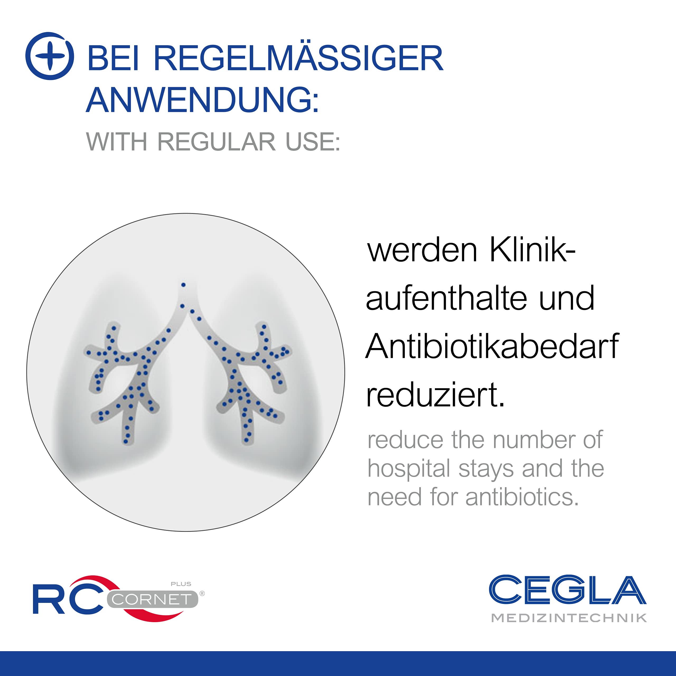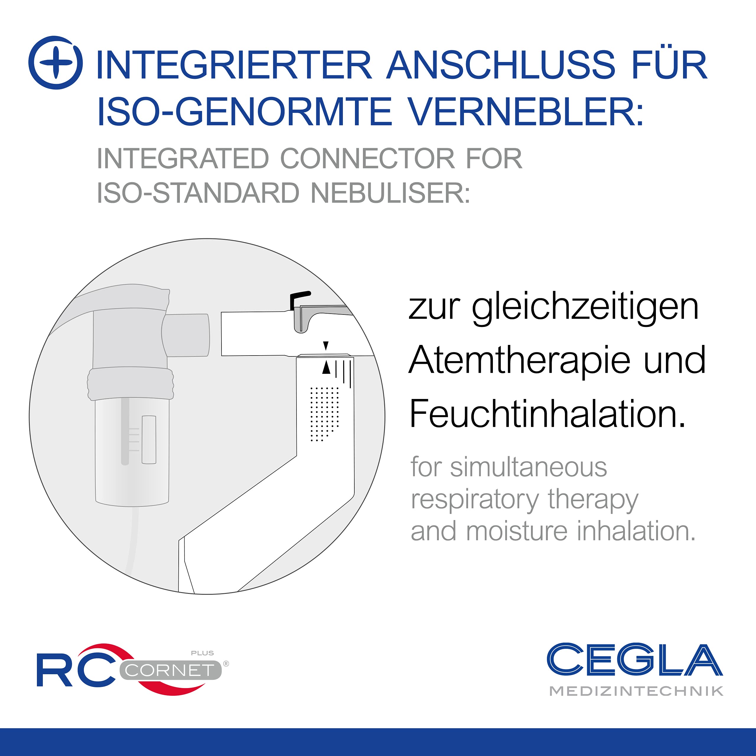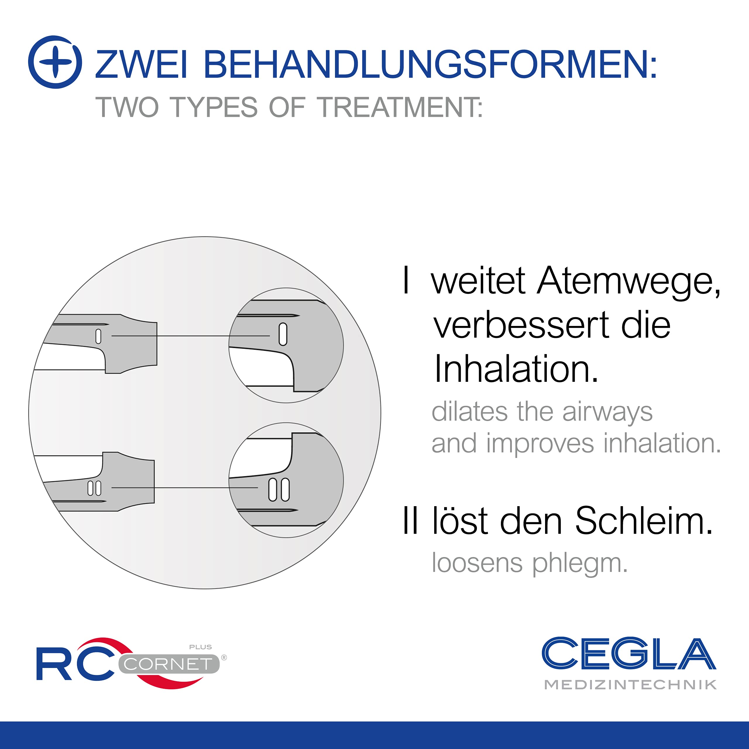 CEGLA RC-Cornet PLUS respiratory therapy device reduces coughing, loosens mucus, relieves shortness of breath – integrated connection for inhalation devices for inhalation, clears lower airways, helps to breathe easier