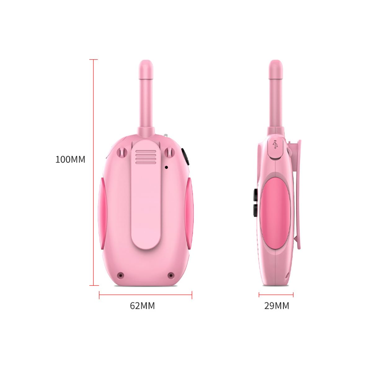 - The children's walkie-talkie weighs only 80 g and fits comfortably in most children's hands. The clip on the back and lanyard design allow children to carry it around.