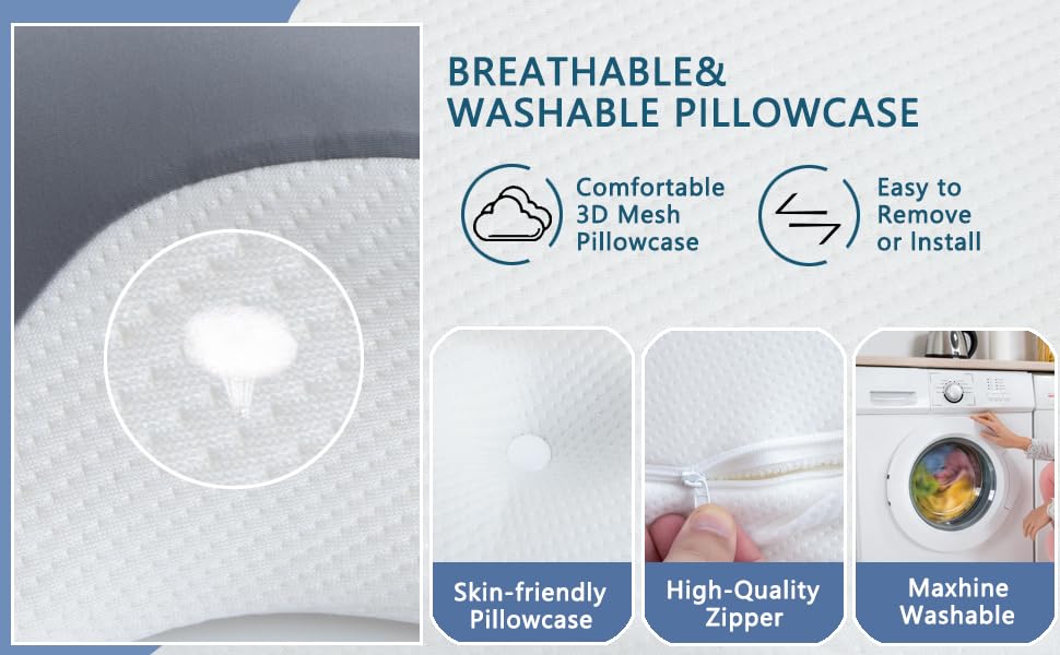 Cervical Pillow for Neck Pain Relief, Elegear Contour Memory Foam Pillow Ergonomic Neck Support for Side Back Stomach Sleepers