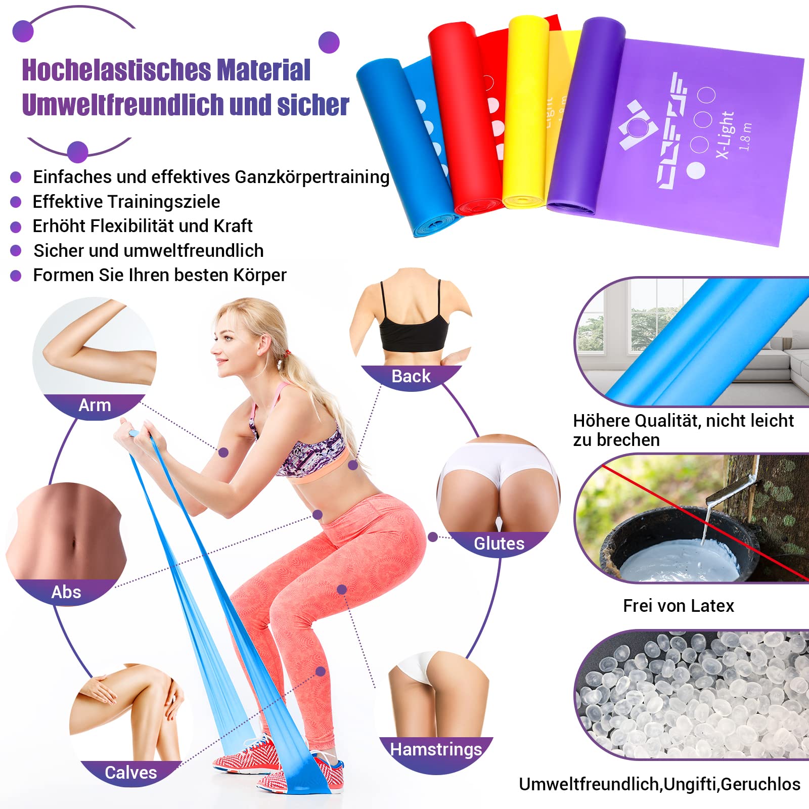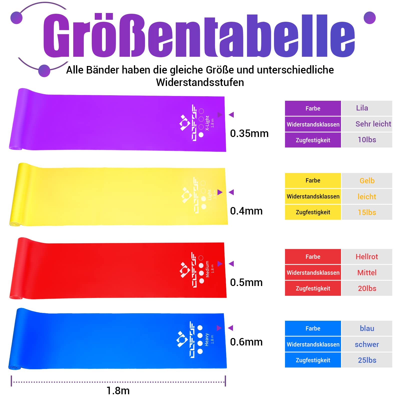 COFOF Fitness Bands Set of 4, 1.8M Exercise Band with 4 Resistance Levels, Fitness Band with Carrying Bag & Exercise Instructions Supplied Ideal for Yoga, Pilates, Strength Training, Physiotherapy