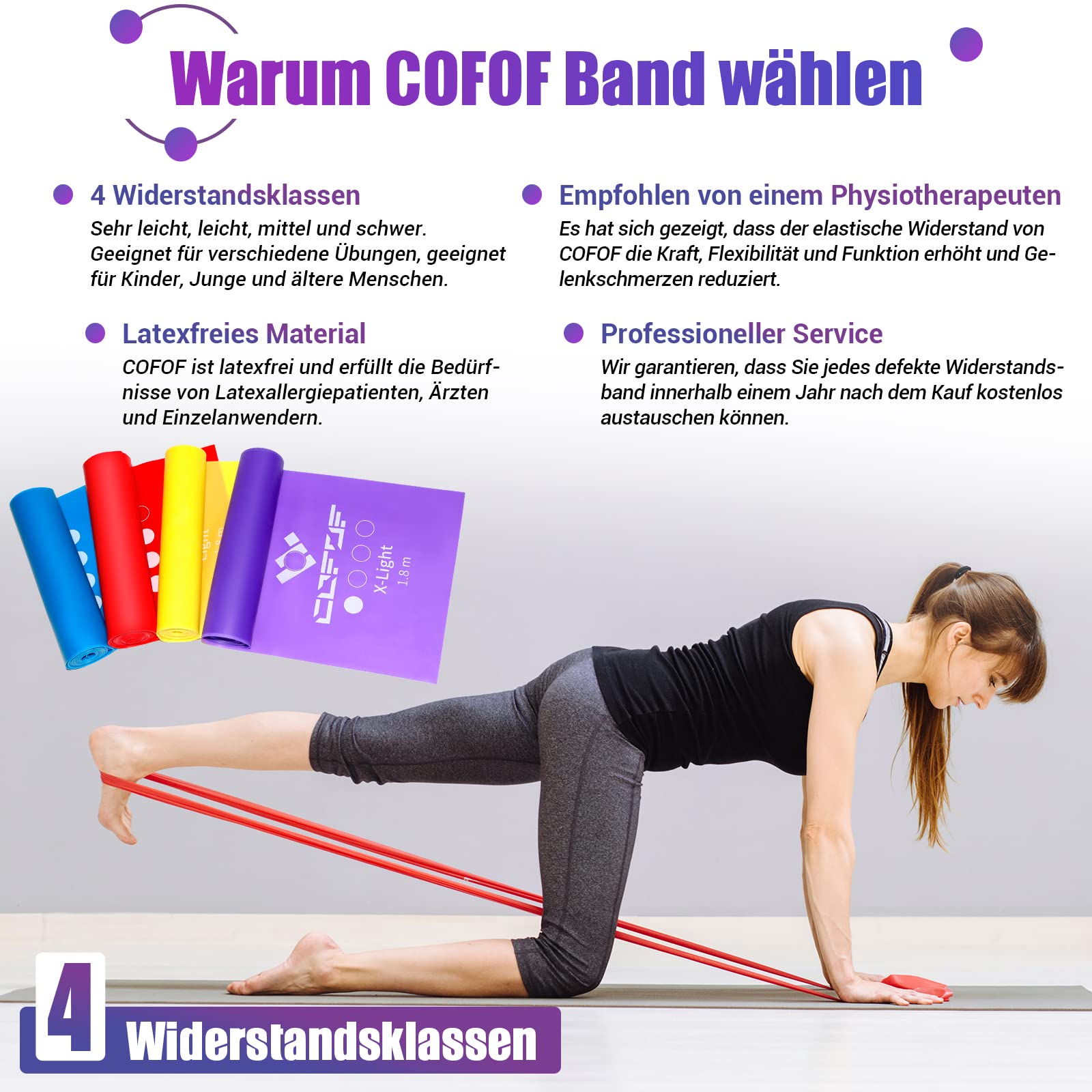 Brand: COFOF Color: Purple, Yellow, Red, Blue Characteristics: High-quality exercise bands: Not easy to break or tear. Non-sticky, odorless, environmentally... Read more