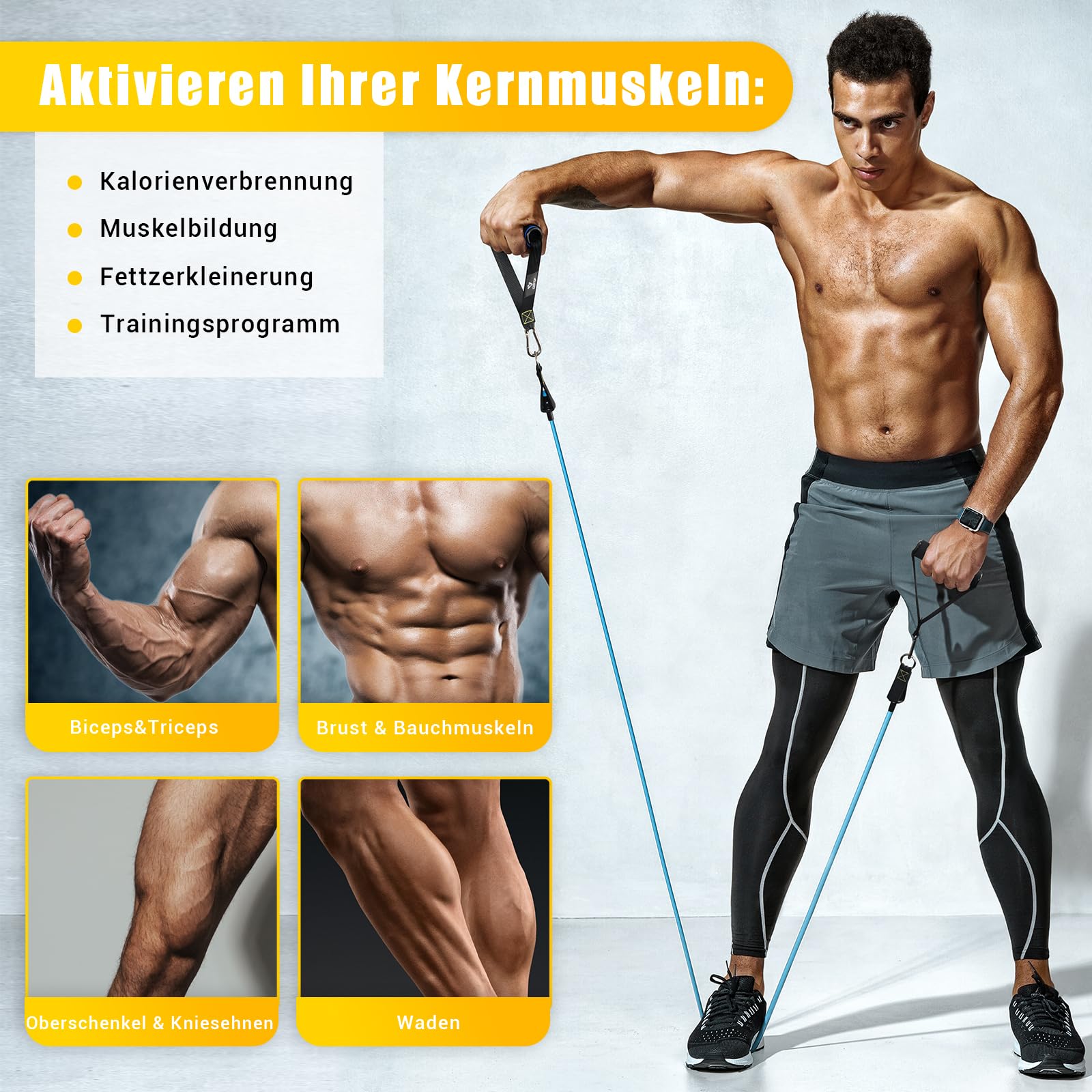 - [Strengthen Muscles and Burn Fat] The resistance bands set can help you perform a variety of exercises, including calorie burning and muscle training. You can use handles, stackable exercise straps, and door anchors to train your shoulders, arms, chest, waist, and hips. The resistance bands with handles can completely replace dumbbells or heavy objects for strength training.