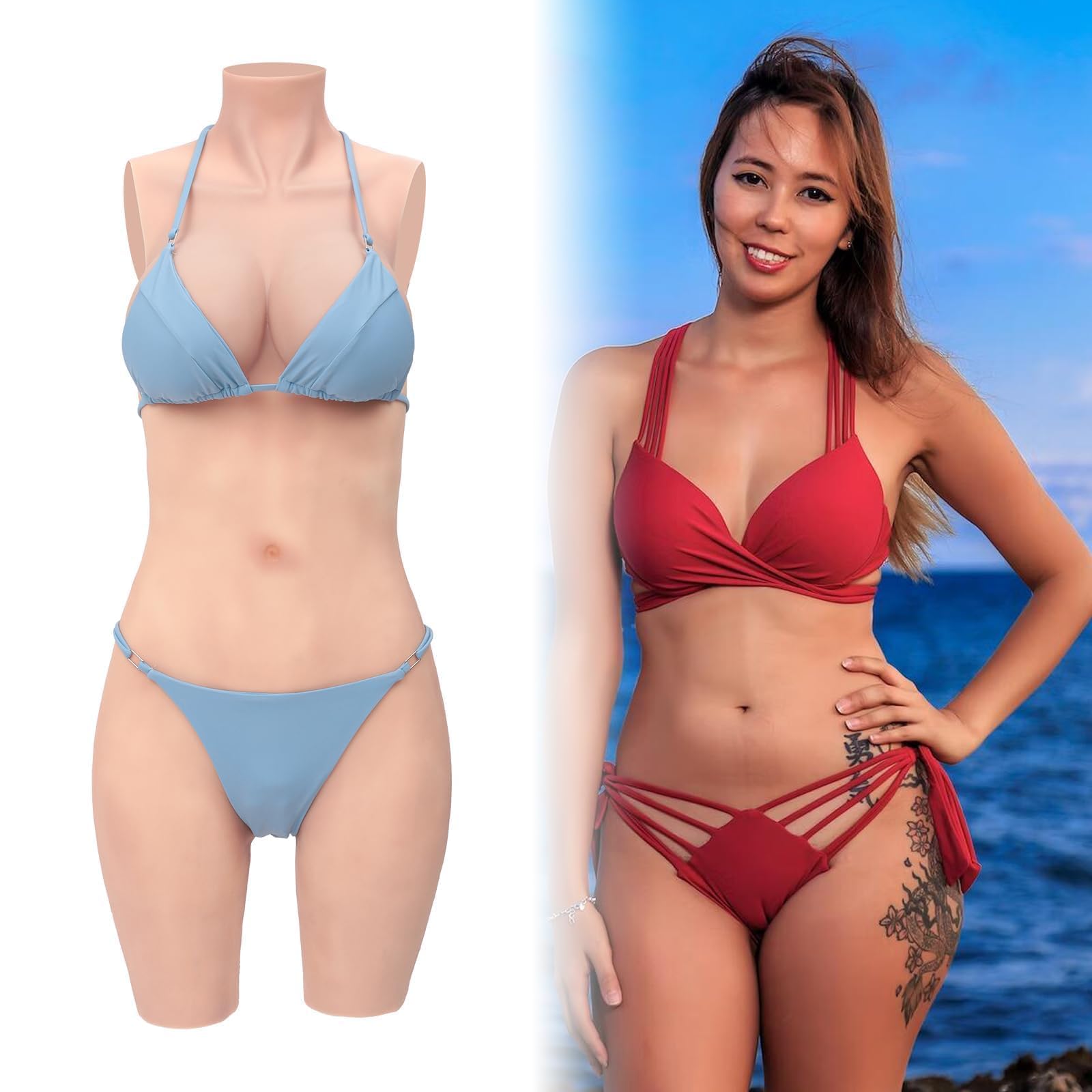 CYOMI Silicone Breast Forms Realistic Breast Plates With Catheter Silicone Bodysuit for Crossdresser Transgender Cosplay (Ivory White D Cup)