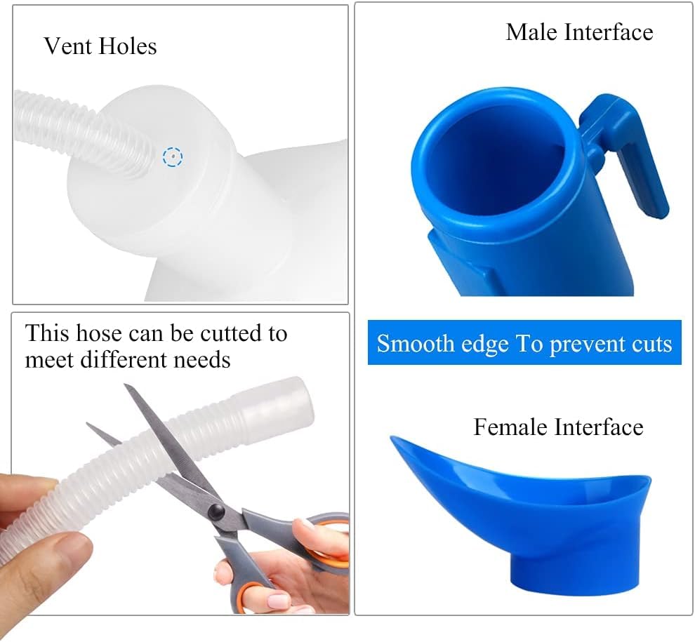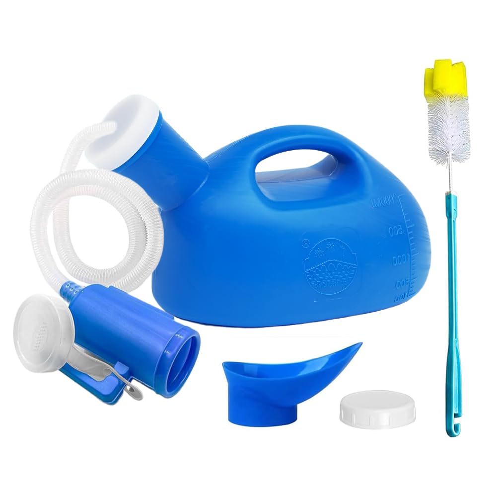 - 👍【Excellent Design】1. The plastic tube of the urinal bottle is approximately 160 cm long. The patient can use the urinal directly on the bed or in a wheelchair. 2. The urinal is equipped with a handle that is easy to grip and comfortable to use. 3. The urine bucket has good sealing performance and is equipped with a plastic screw lid to prevent urine from leaking. 4. This urinal is also specially designed with a female urinal connector, convenient for women to use. 5. Equipped with a special urinal cleaning brush, convenient for you to clean the urinal.