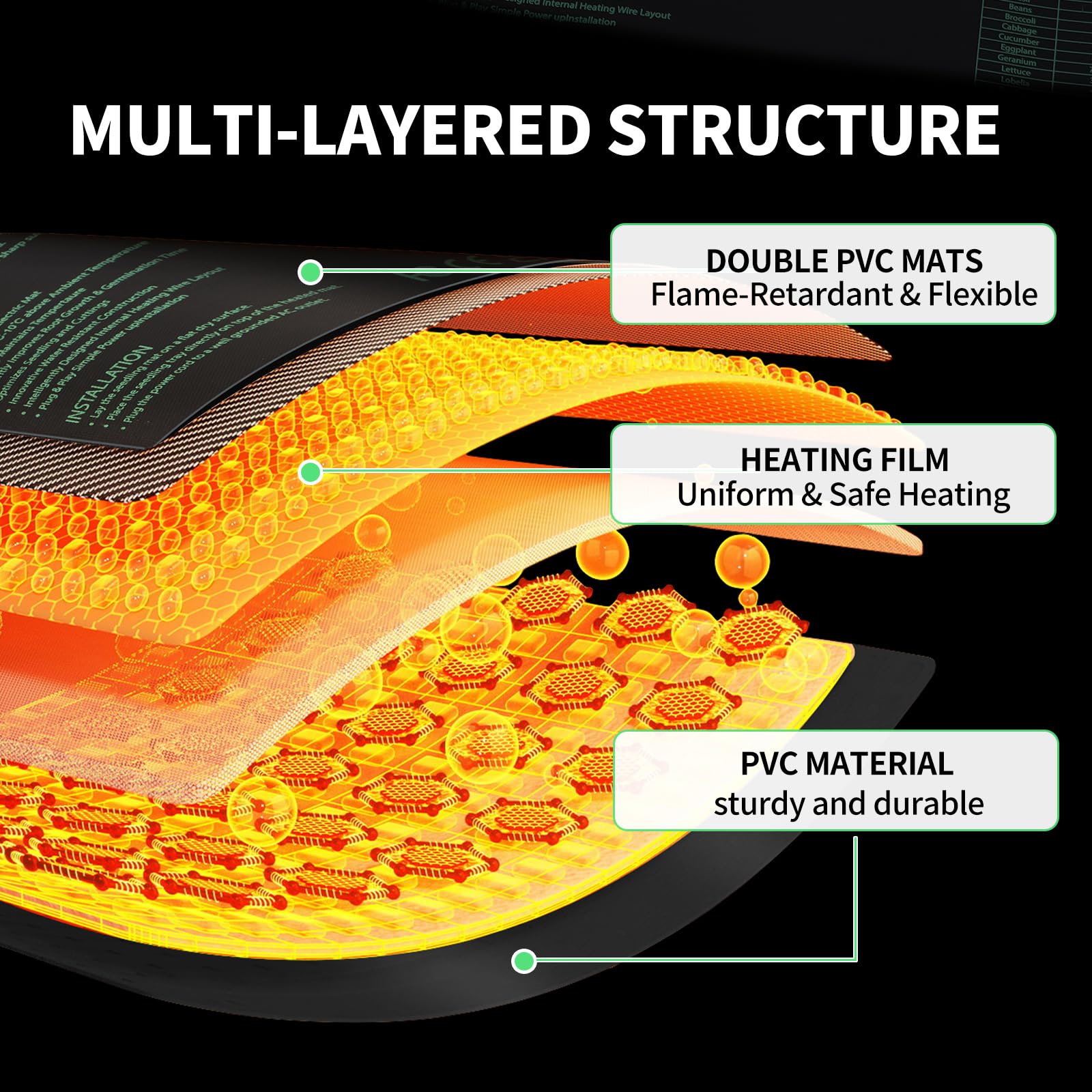 - 🌱【Waterproof and Durable - Ideal for Any Climate】Our heating mat with thermostat is made of high-quality, waterproof PVC material, which is not only durable but also easy to clean. The indoor greenhouse heating mat is IP67 rated, dustproof, and splashproof, making it perfect for long-term use in a variety of environments. Heating mats with a controller offer you additional safety during use.