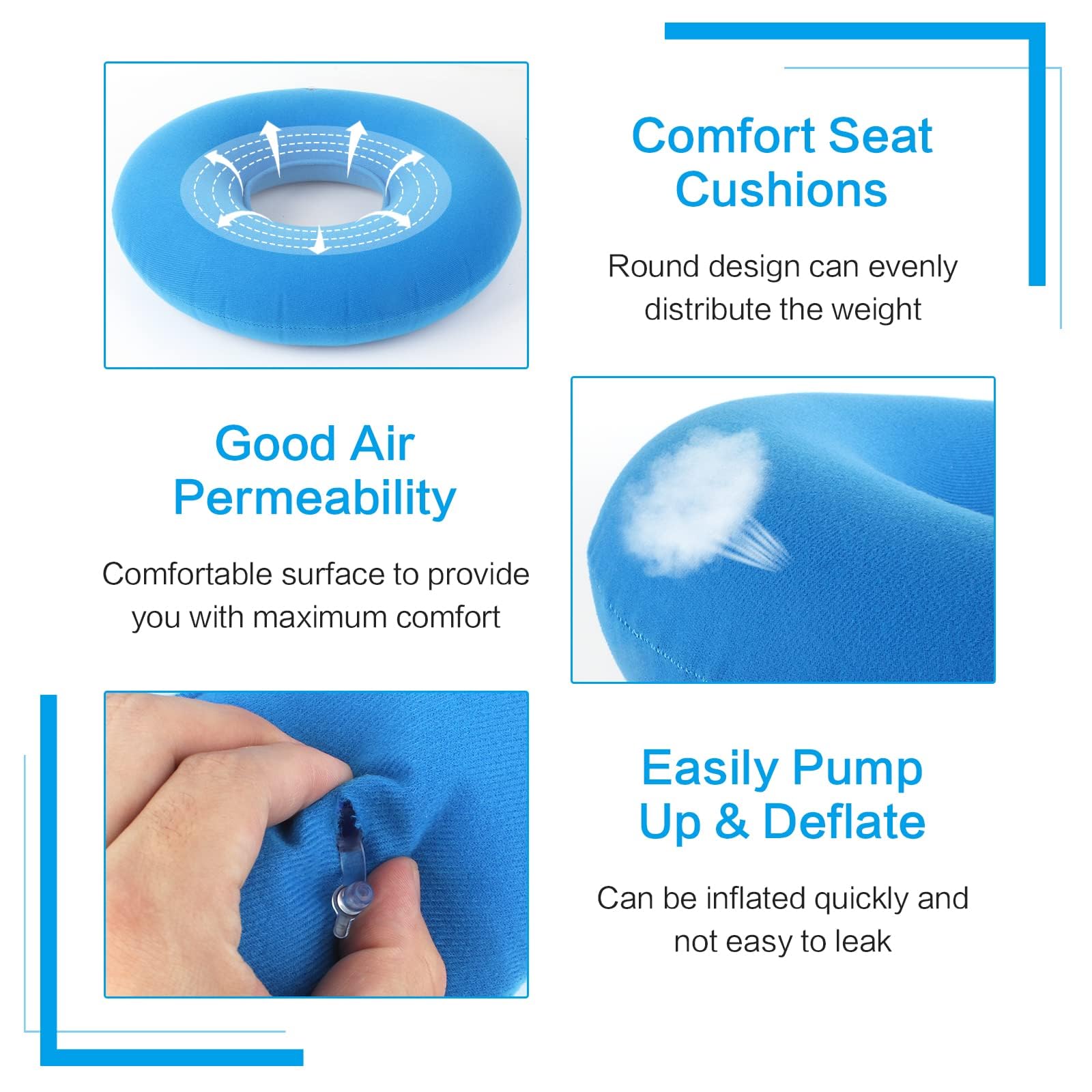 Donut Pillow, Hemorrhoid Seat Cushion, Seat Ring After Surgery Seat Cushion, Orthopedic, Decubitus Cushion, Portable Inflatable Seat Cushion with Pump for Hemorrhoids, Tailbone Pain, Wheelchairs, Pregnant Women