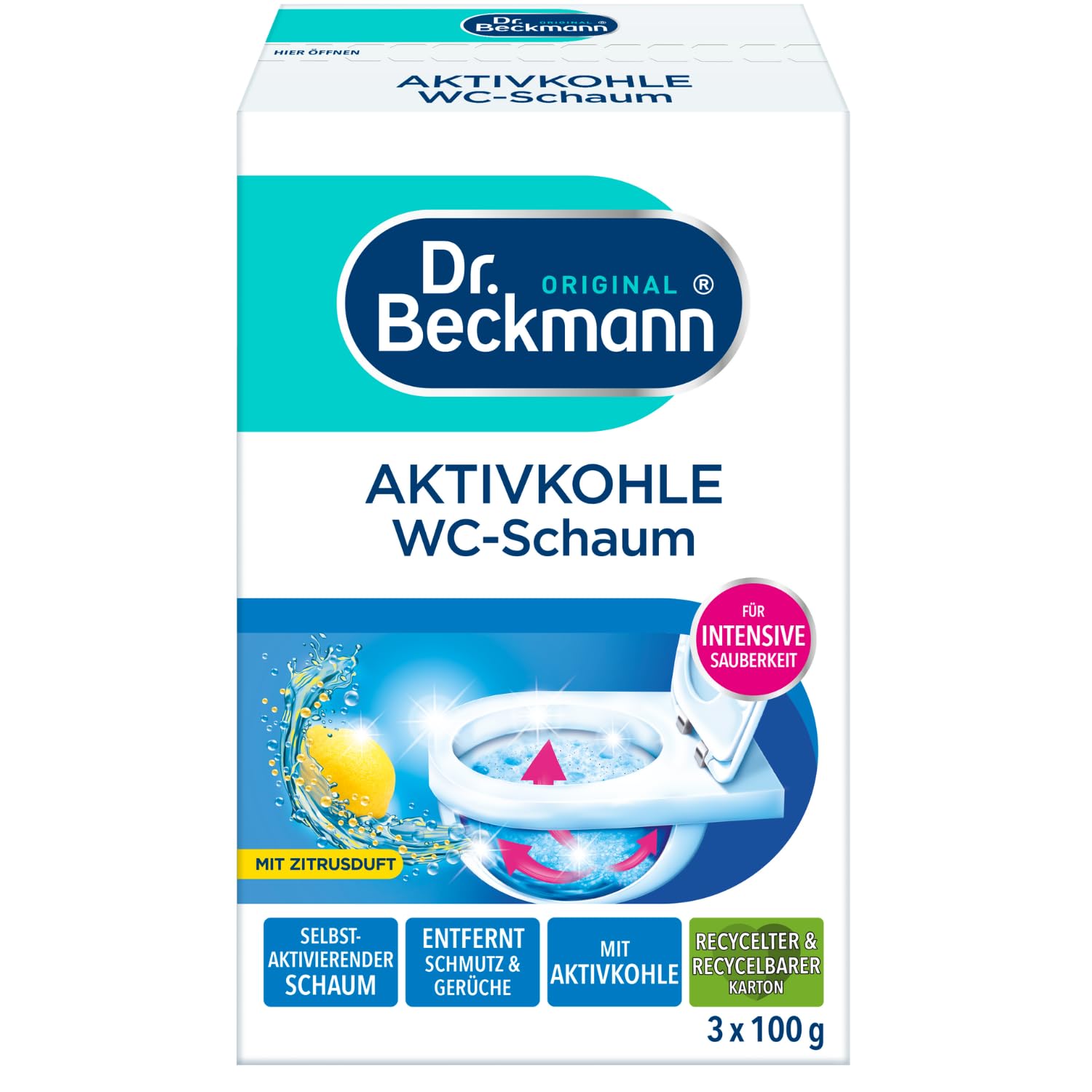 Dr. Beckmann Activated Carbon Toilet Foam cleans the toilet independently, quickly and thoroughly. Our expert formula with activated carbon removes stubborn dirt and unpleasant odors and, when used regularly, prevents the build-up of limescale and urine stones. When in contact with water, the powder develops into a deep-cleaning active foam. For a sparkling clean toilet with a fresh citrus scent. Suitable for: All toilet bowls Not suitable for: Sink drains Directions for use: 1. Pour the entire contents of one sachet into the toilet. 2. A foam will immediately rise in the toilet bowl. As soon as the foam breaks up, flush the toilet and go through the bowl with a brush. Important information: Adding hot water to the standing water in the toilet before pouring in the powder increases the activity of the foam.