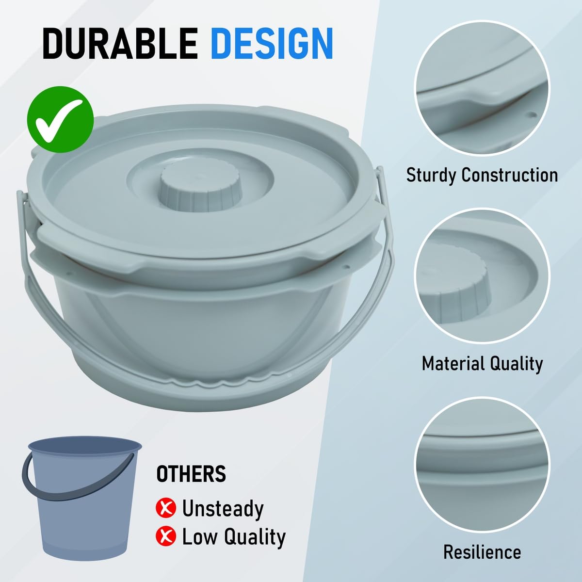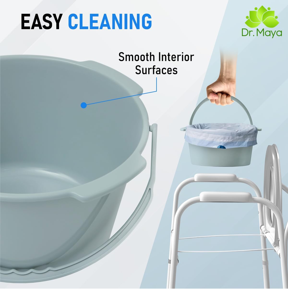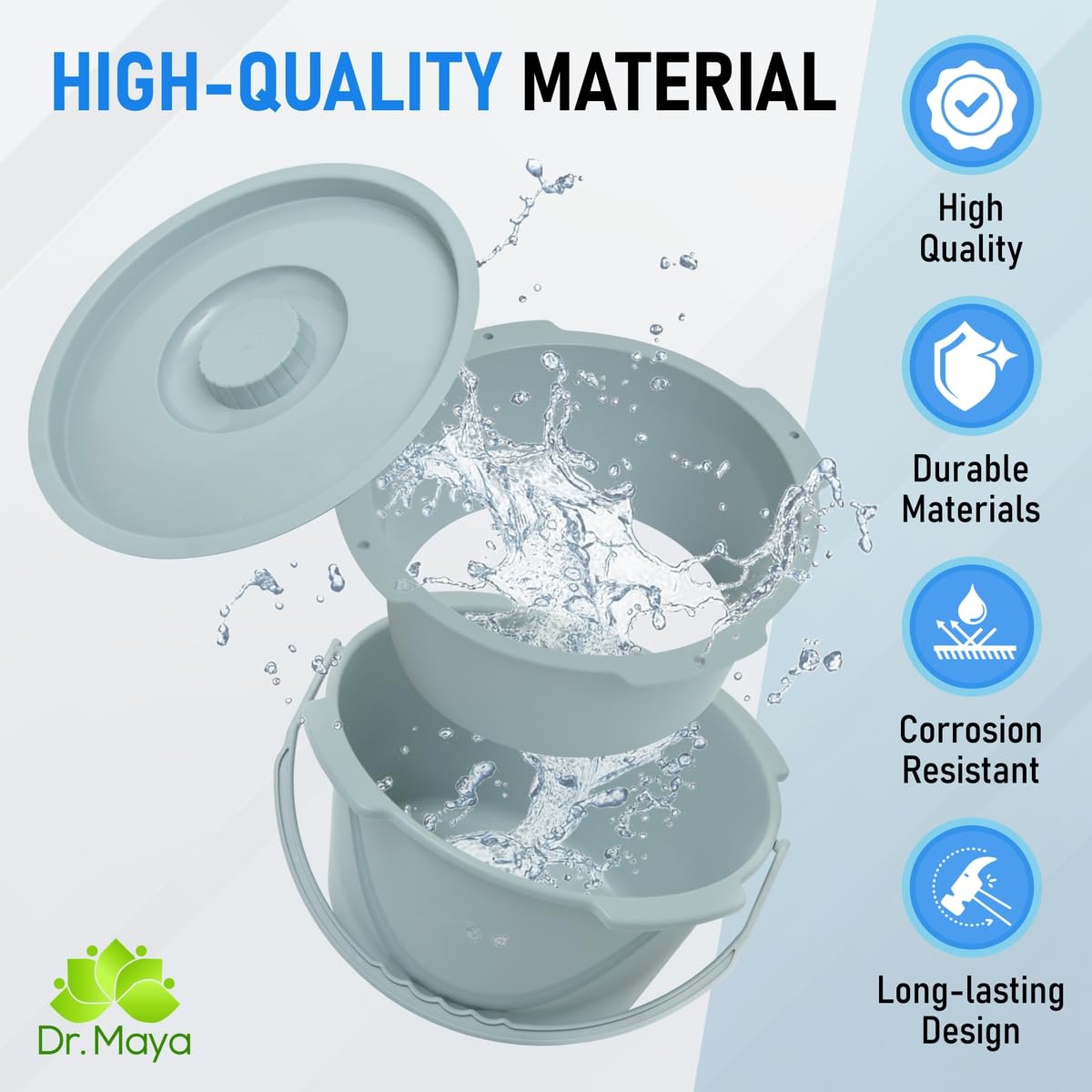 Dr. Maya Replacement Bucket for Chamber Pot, 7.5 qt, Adult Toilet Stool, The Emergency Toilet to Go, Mobile Commode Chair, Portable Toilet Bucket with Lid and Handle, Ideal for Seniors and Disabled People