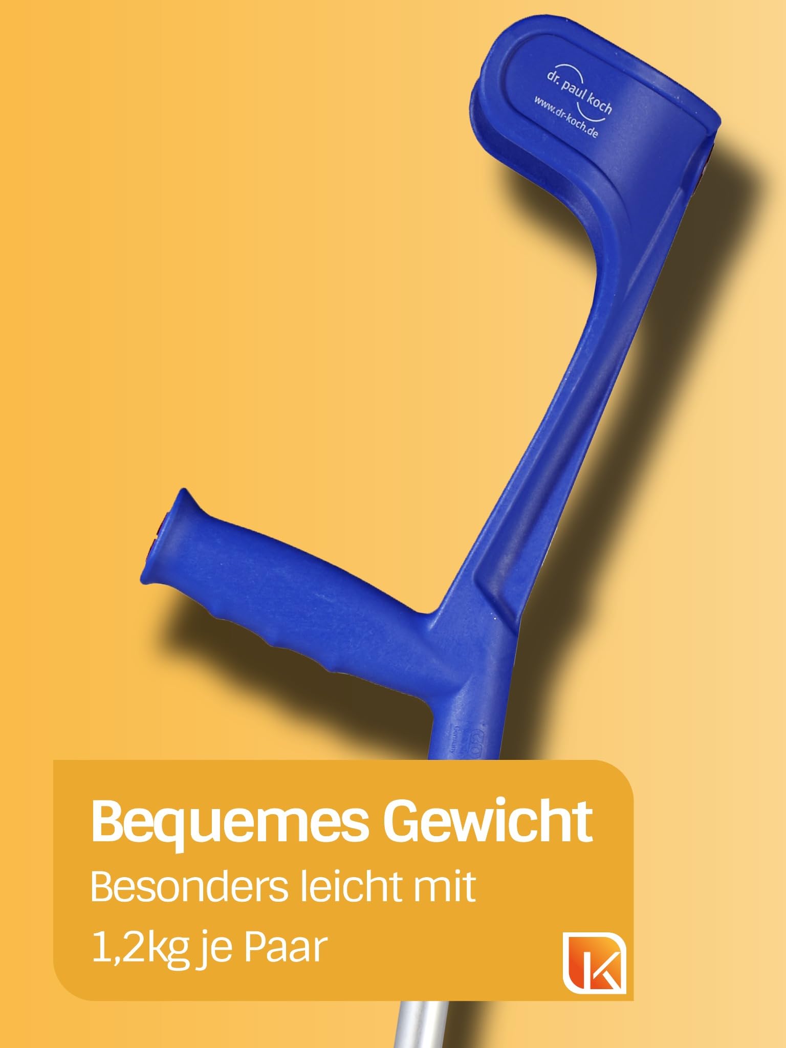 Details: Comfortable grip: Thanks to the comfortable armrest and plastic handle, our walking aid is particularly comfortable to use. Ideal for people with limited mobility in the lower extremities. Individually adjustable: The clip allows the walking aid to be adjusted to suit your size. The height is adjustable from 76 cm to 96 cm. Particularly lightweight: At just 0.6 kg, the walking aid is very comfortable to use and easy to transport. Premium material: We only use the highest quality materials, such as high-quality plastic and special light metal tubes in silver anodized. This ensures quality and durability. Our quality promise: As a traditional company, we have been manufacturing health products and medical aids for over 120 years that stand for the best quality and maximum comfort.