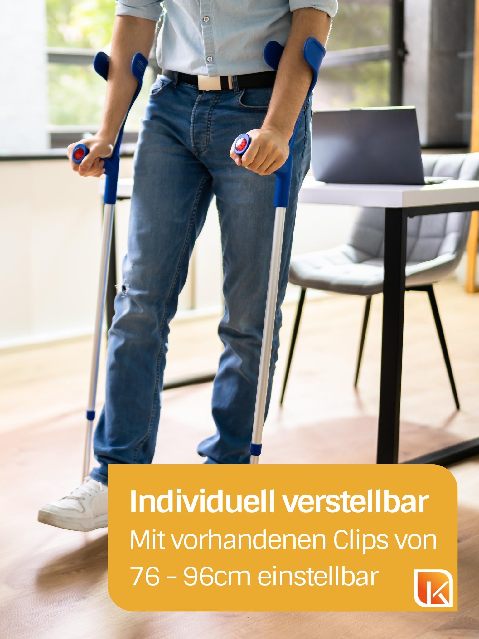 - INDIVIDUALLY ADJUSTABLE: The crutch can be adjusted to suit your height using the included clip. The height is adjustable from 76 cm to 96 cm.