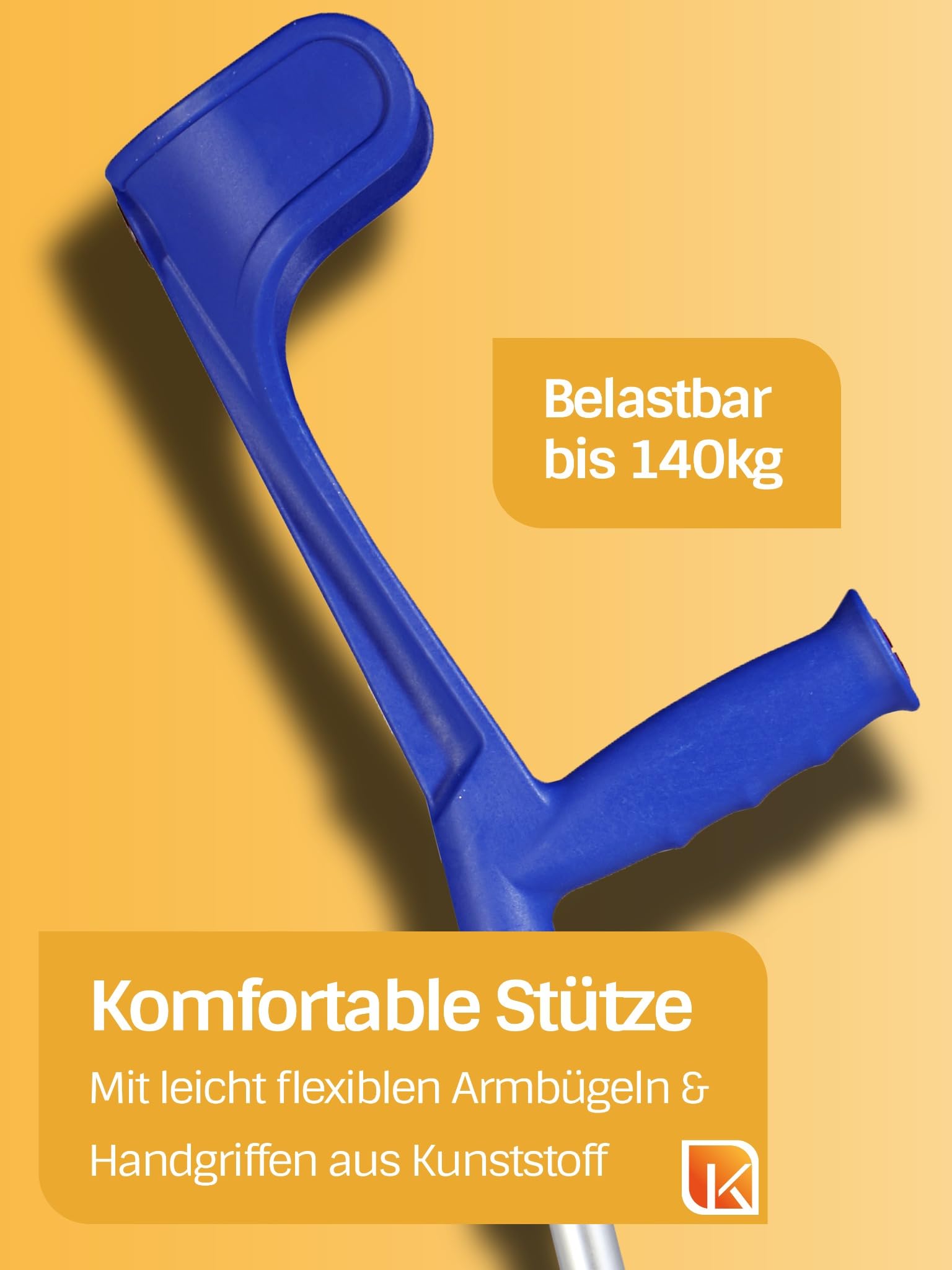 DR. PAUL KOCH Crutches Pair Black - Walking Aid Made of Aluminum with Plastic Handles - Load Capacity Up to 140 kg - Adjustable with Practical Clip - 1.2 kg Net Weight per Pair of Crutches