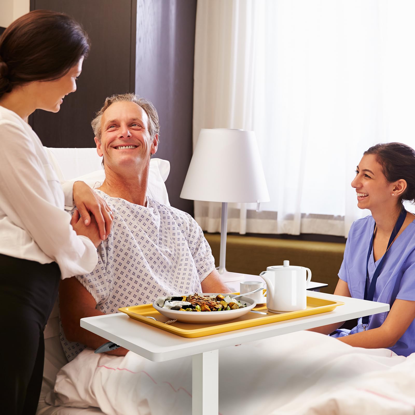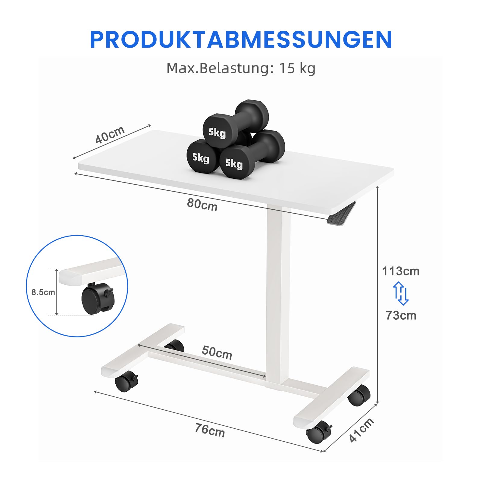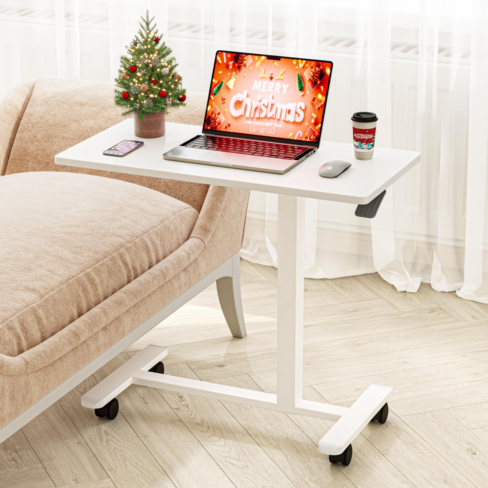 Dripex side table height-adjustable with wheels, nursing table for bed, small wooden computer table overbed table on wheels, sofa table bedside table for living room, bedroom, white