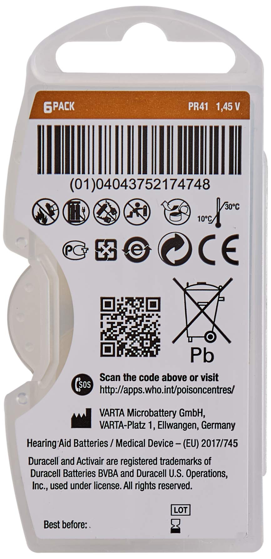 Brand: Duracell Characteristics: Country of origin:- Germany Outer material: Zinc Air 60 pcs. Duracell TYPE 312 Easy Tab hearing aid... Read more