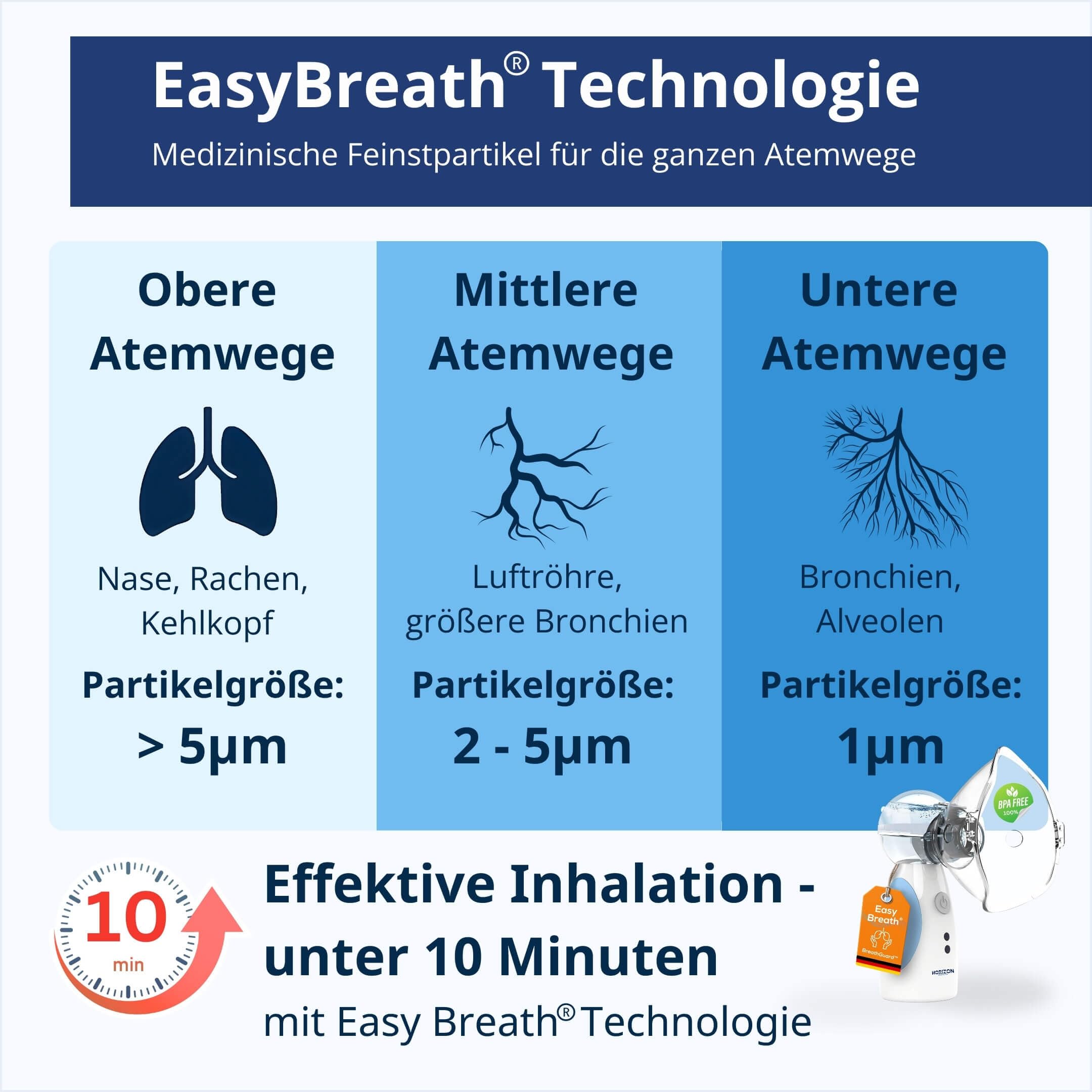 - ✔️ WHISPER QUIET and compact design - perfect for everyday use: The Easy Breath Plus offers powerful and fast nebulization in an ultra-light, portable design - ideal for stress-free inhalation therapy for patients of all ages, whether at home, on the go or while sleeping.